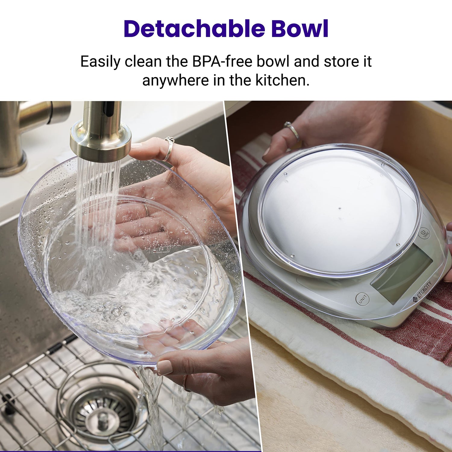 Etekcity 0.1g Food Kitchen Scale, Bowl, Digital Grams and Ounces for Weight Loss, Dieting, Baking, Cooking, and Meal Prep, 11lb/5kg, Stainless Steel Silver