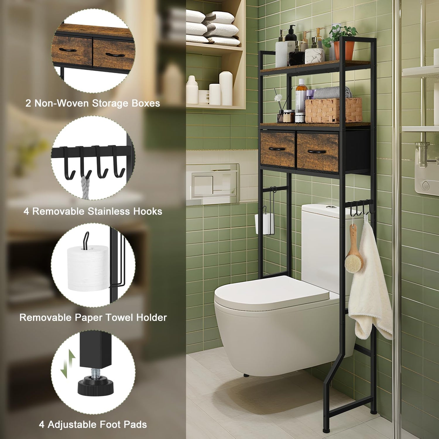 ETELI Over The Toilet Storage Cabinet with Fabric Drawers Bathroom Storage Over Toilet Fit Most Toilets, Rustic Brown