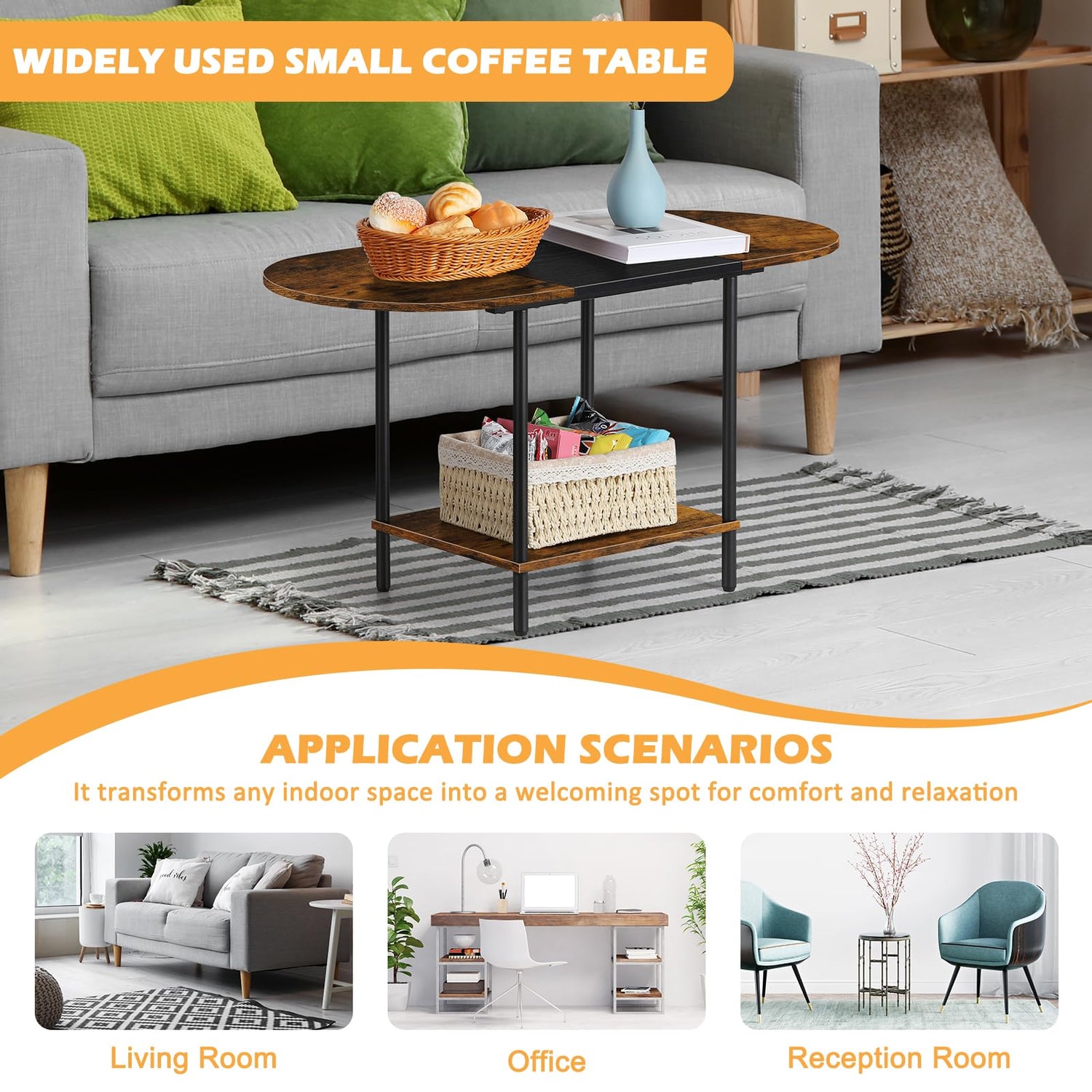 ETELI Small Round Coffee Tables for Small Space Farmhouse Oval Coffee Table with 2-Tier Storage Shelf Circle Center Tea Table for Living