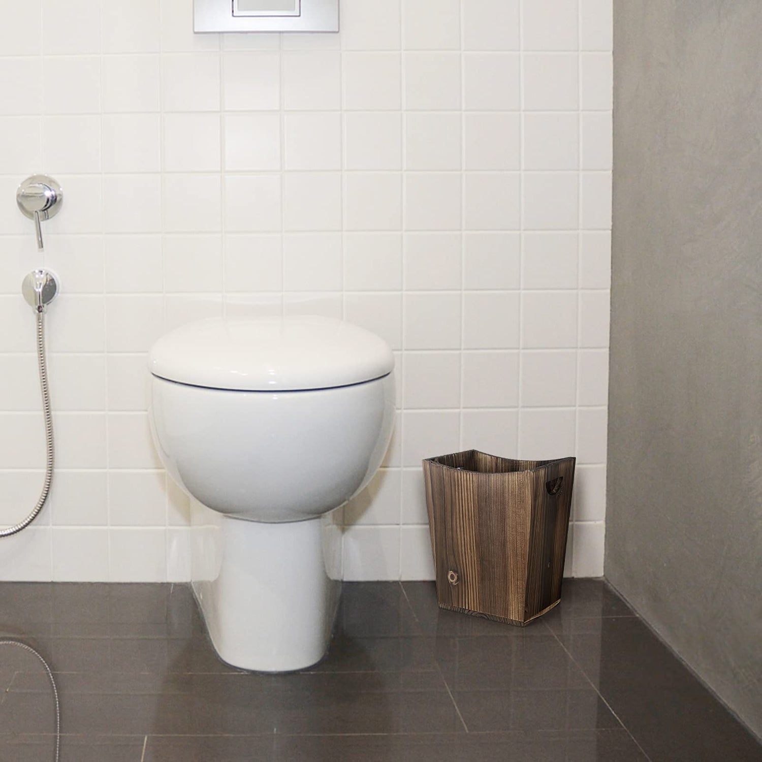 - 【STURDY & DECORATIVE】: Compared with the traditional plastic bin, the wood waste basket bathroom is sturdier. It can be used for a long time. Due to the perfect shape, it is used for home or office decoration, too.