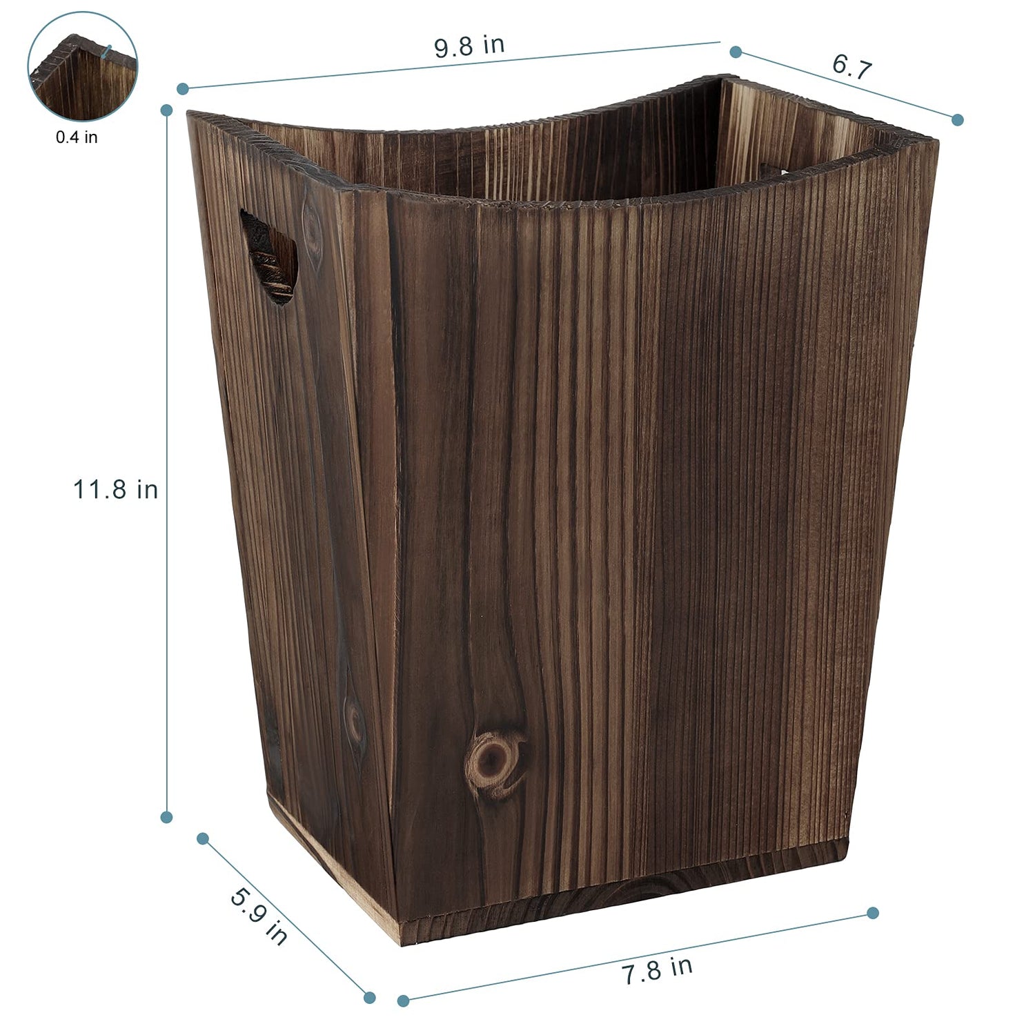 - 【SMALL WASTE BASKET】: Measure 9.84 x 6.69 x 11.8 inches. You can place it anywhere you need it. The rectangular trash can wastebasket wood only occupys small space in the office, kitchen, bathroom, etc. Though it has the compact size, the wide opening design makes it easier to throw garbage and be placed under the desk.