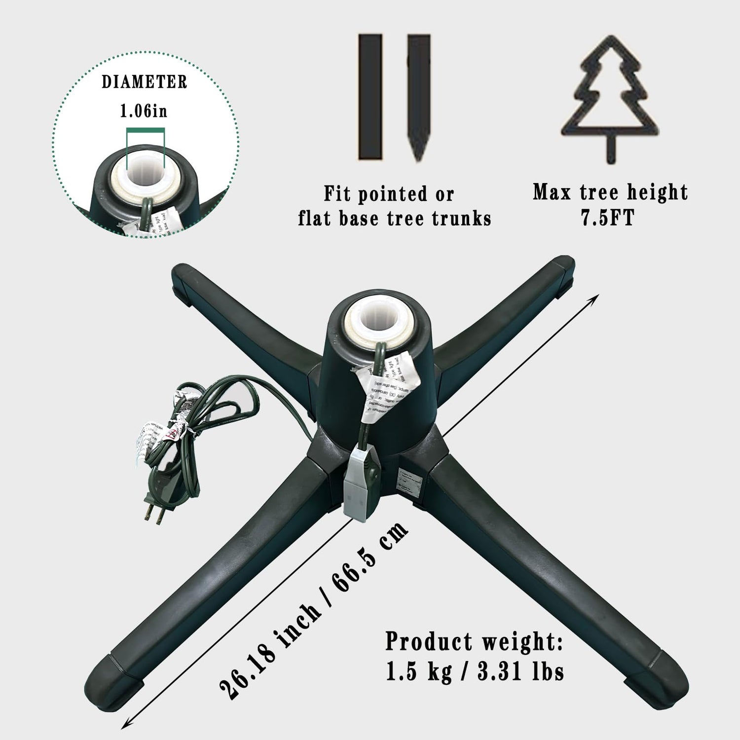 - DURABLE AND VERSATILE: This rotating tree stand is sturdy enough to hold any artificial Christmas tree up to 7.5' tall with a trunk diameter of 0.9"- 1.25" up to 80 pounds