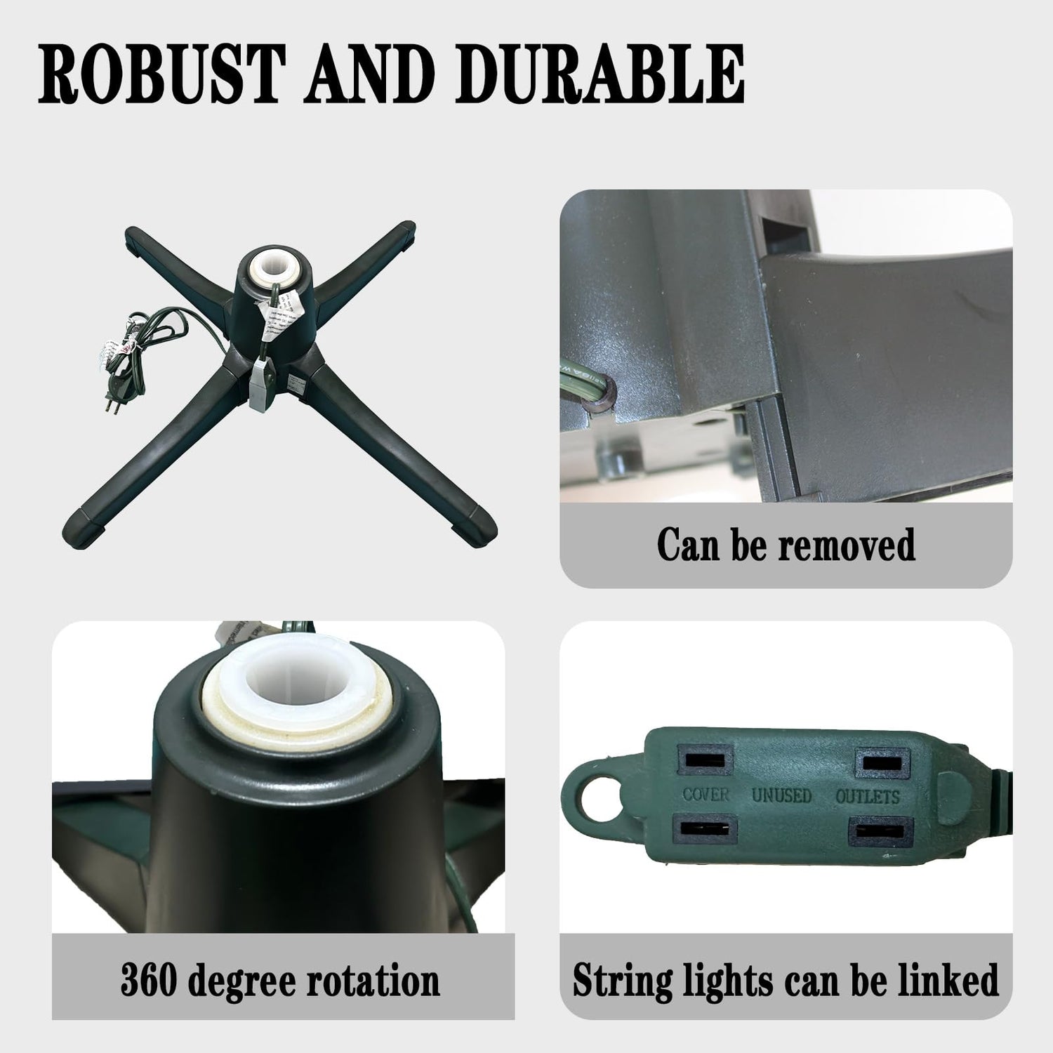 - 3 BUILT-IN OUTLETS: The base contains 3 two-prong outlets to connect Christmas lights, preventing wires and cords from getting tangled or wound up
