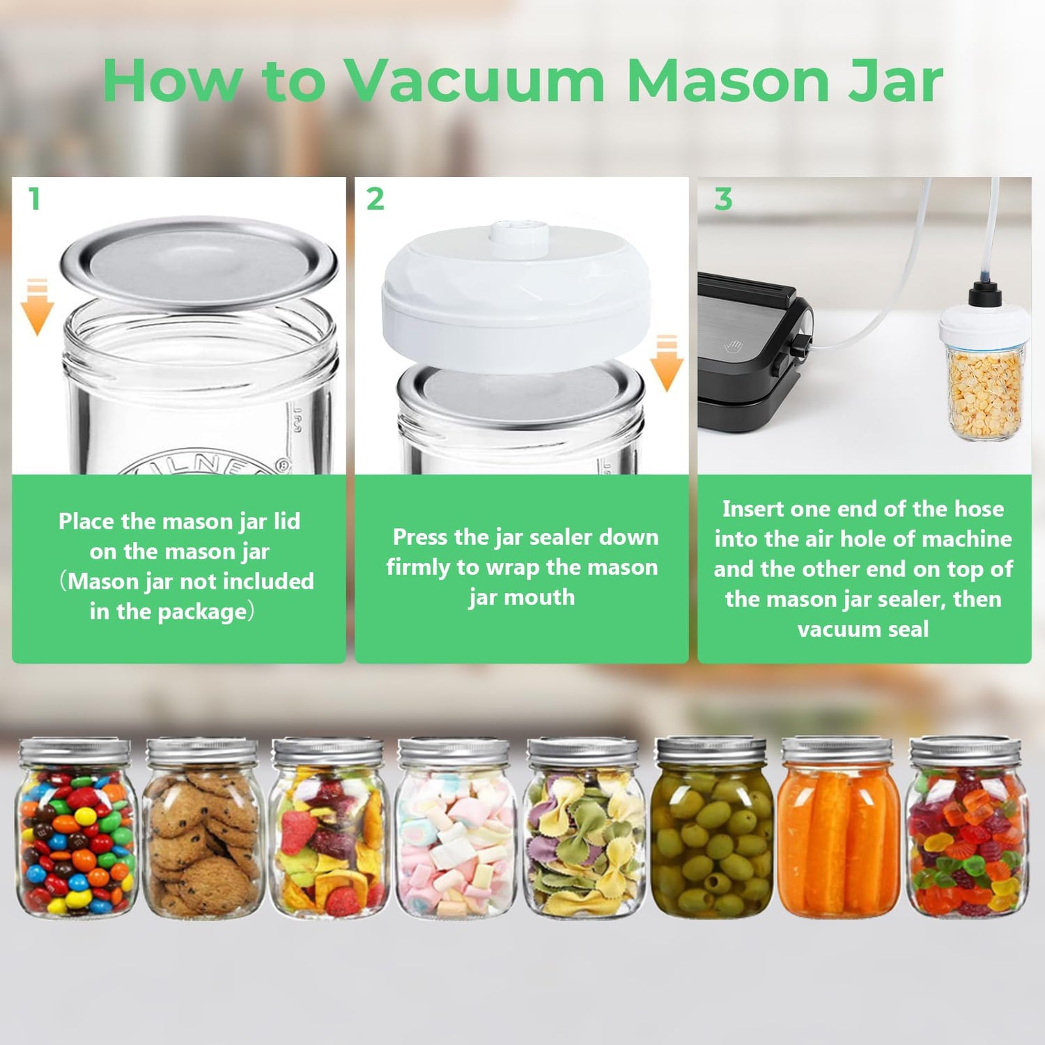 - ๐๐๐๐๐จ๐ซ๐ญ๐ฅ๐๐ฌ๐ฌ ๐๐๐ฌ๐จ๐ง ๐๐๐ซ๐ฌ ๐๐๐๐ฅ๐ข๐ง๐ : You don't have to buy an extra Mason Jar Sealer. Our 2 in 1 Vacuum Sealer Kits will transform the way you seal Mason jars. Including various Mason jar lids, Mouth sealers, and an air suction hose, this setup works with most Mason jars, eliminating the need for a separate electric sealer. Enjoy hassle-free jar and canister sealing.