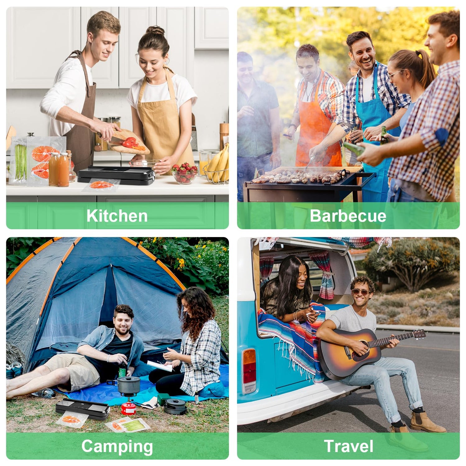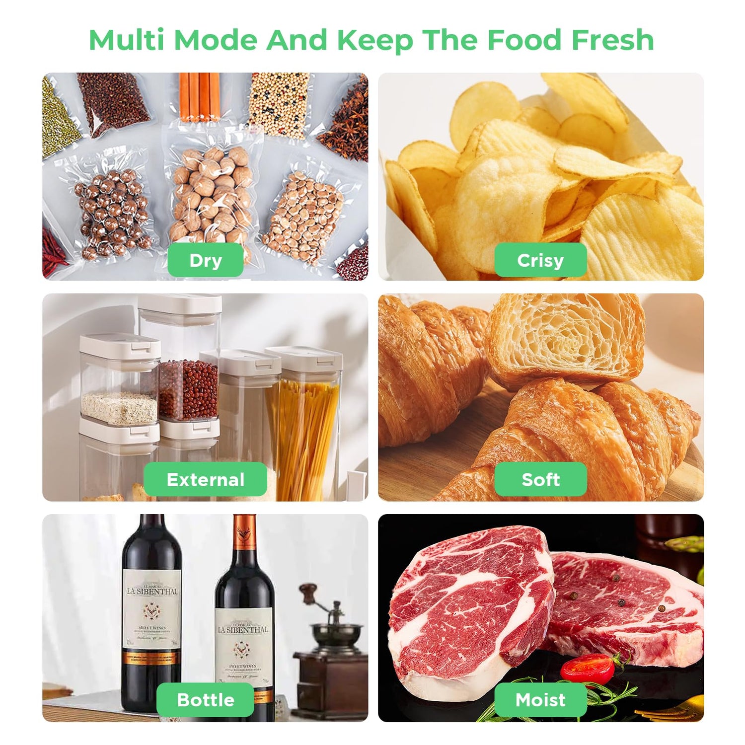 - ๐ฅ๐ ๐ข๐ง ๐ ๐๐๐๐ฎ๐ฎ๐ฆ ๐๐๐๐ฅ๐๐ซ ๐๐ญ๐๐ซ๐ญ๐๐ซ ๐๐ข๐ญ: All-in-one kit includes everything you need: bag sealing, Mason jar sealing, vacuum seal options for moist/dry food, quick sealing, manual vacuum control, canister and wine preservation, customizable bag sizes, roll storage. With unique silicone design, keep tight seal in months. Comparing to other vacuum sealer with old sponge design, whose seal effect weakens in 1 month.