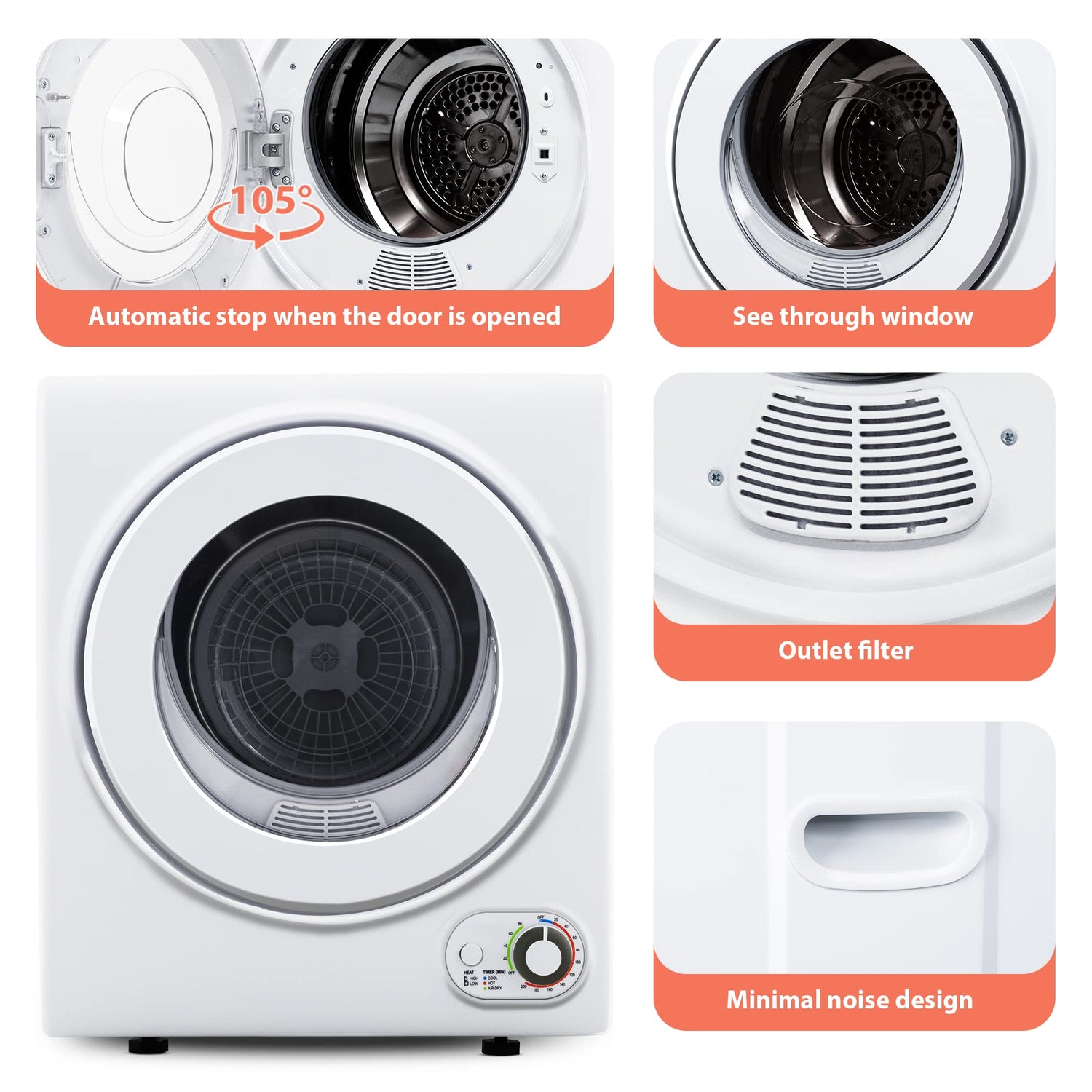 Euhomy 110V Portable Clothes Dryer 850W Compact Laundry Dryers 1.5 cu.ft Front Load Stainless Steel Electric Dryers Machine with Stainless Steel Tub for Apartment,RVs,Dorms,White Easy Control