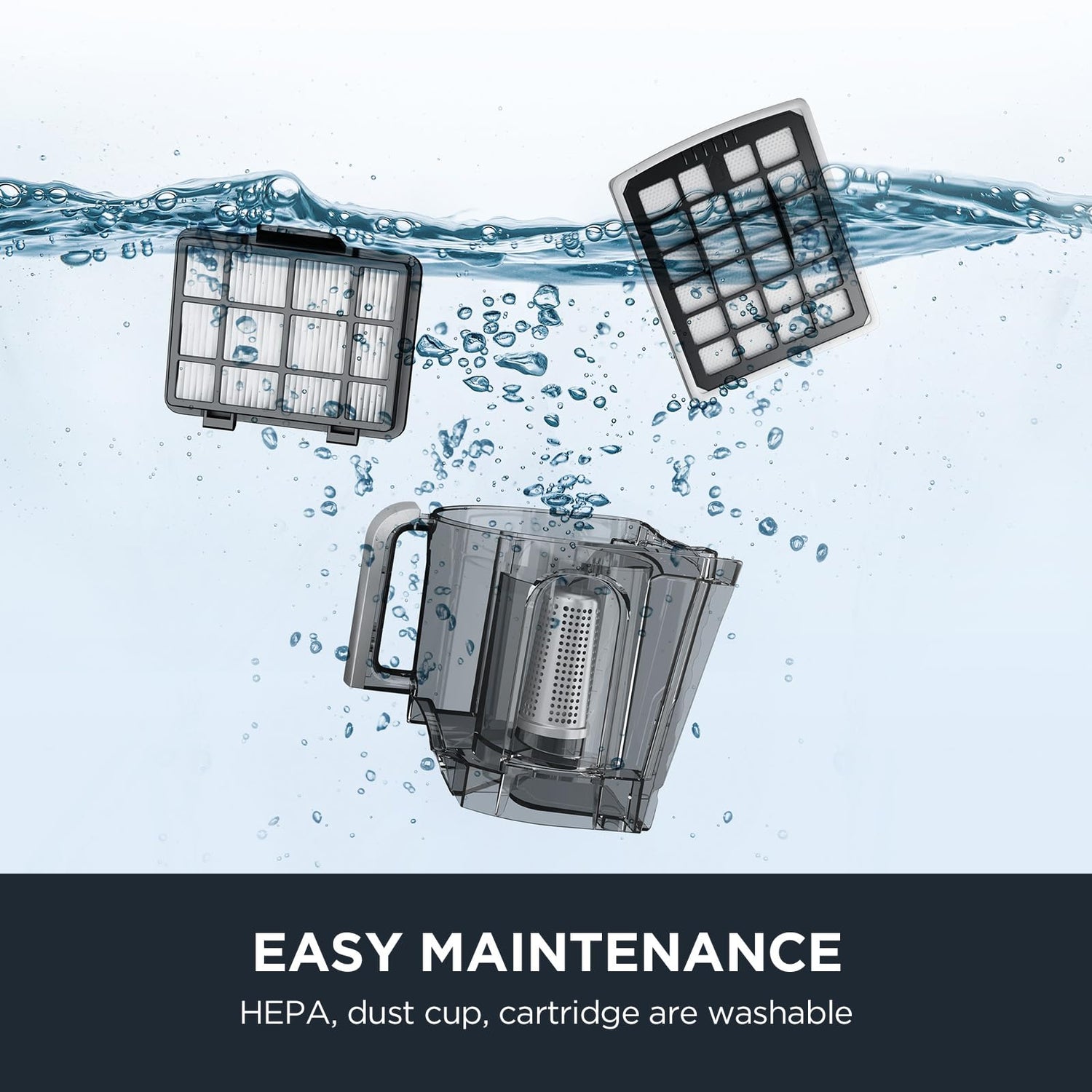 EUREKA NEN180 has three-stage filtration that effectively captures and filters dust particles. With an impressive filtration efficiency of up to 99.9%, this fully sealed canister vacuum cleaner can trap dust particles as small as 0.3 micrometers, ensuring clean air and safeguarding the health of your loved ones.