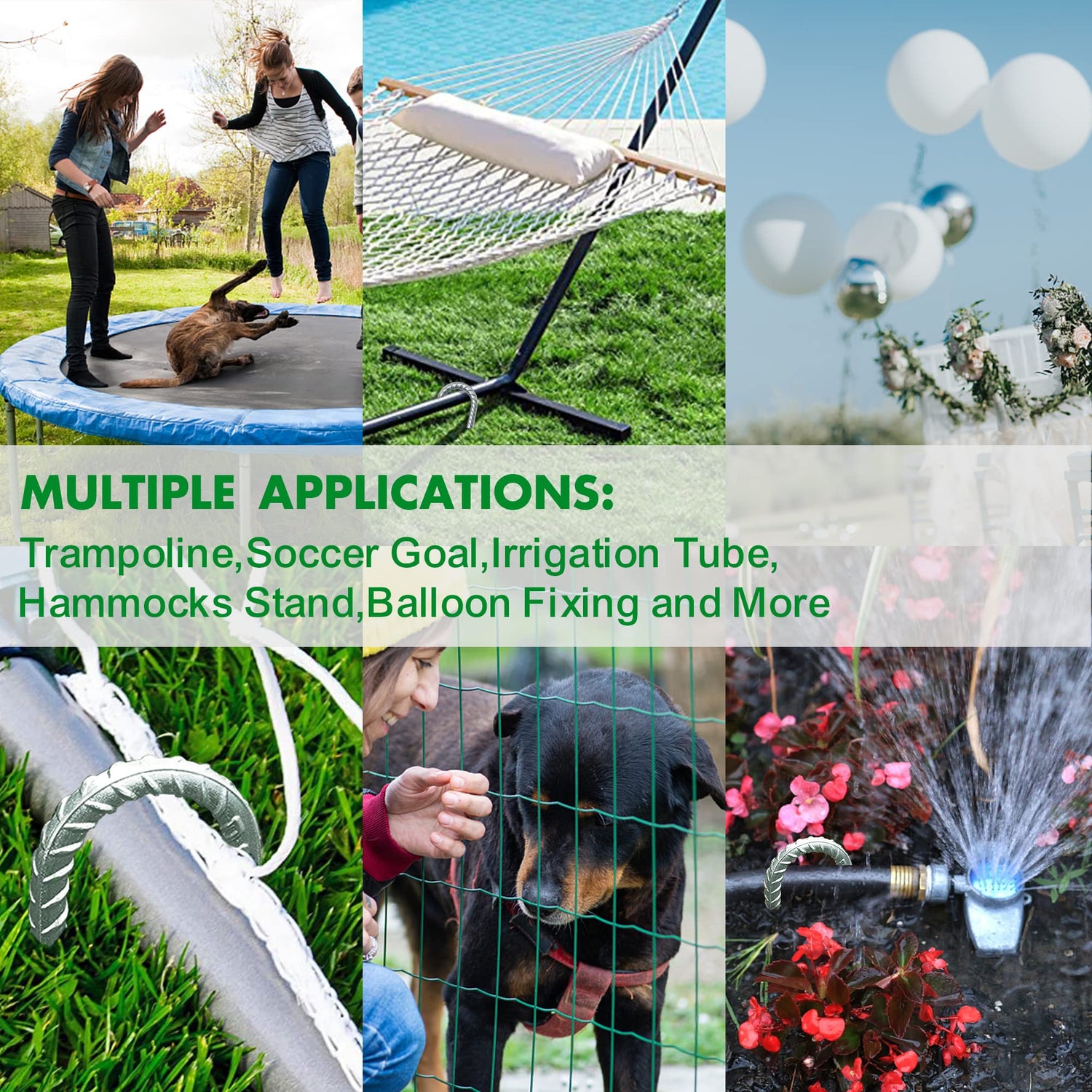 - Wide Applications:These durable rebar ground anchor can help to hold down the swing sets and soccer goals, can be used to fix the fences.Heavy duty ground stakes can fasten your trampoline securely in place.You can also use them as camping tent stakes.