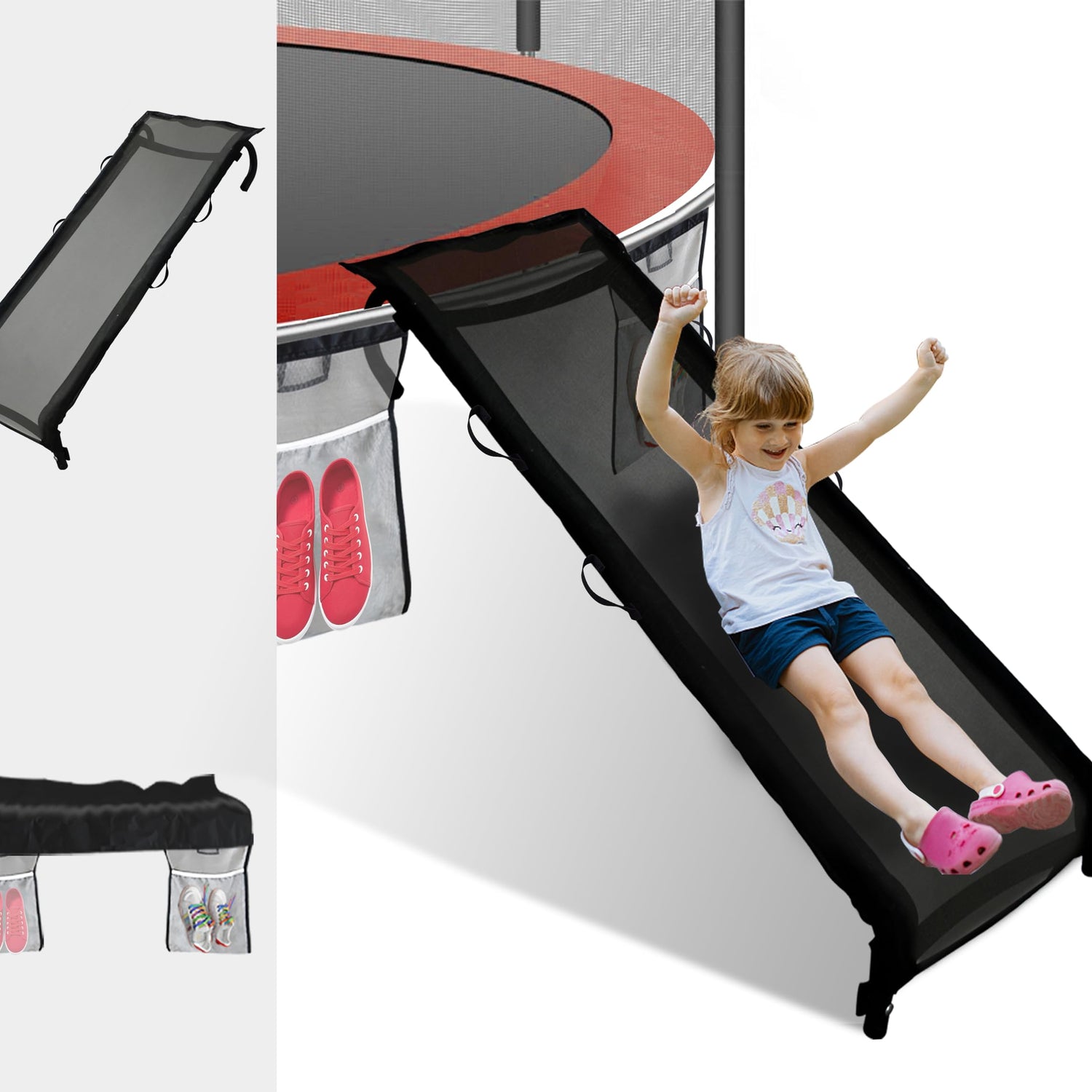 - COMPREHENSIVE SAFETY GUARANTEE:The large hook design on the top makes the connection between the slide and the trampoline stronger and safer.Our trampoline slide attachment will create safe, protective access up/down the trampoline for smaller kids and prevent bumps and bruises.(Socks are not recommended unless they are trampoline socks)