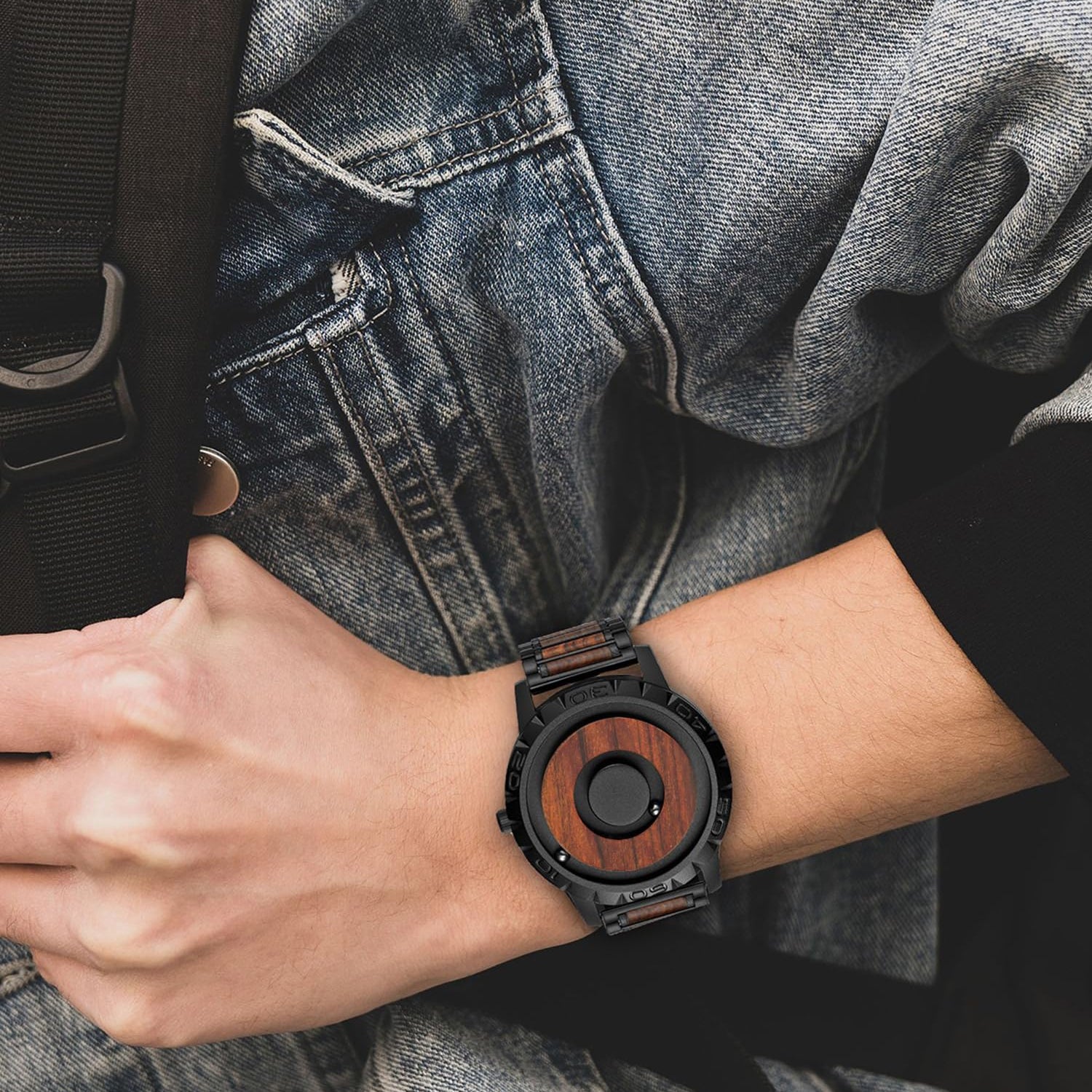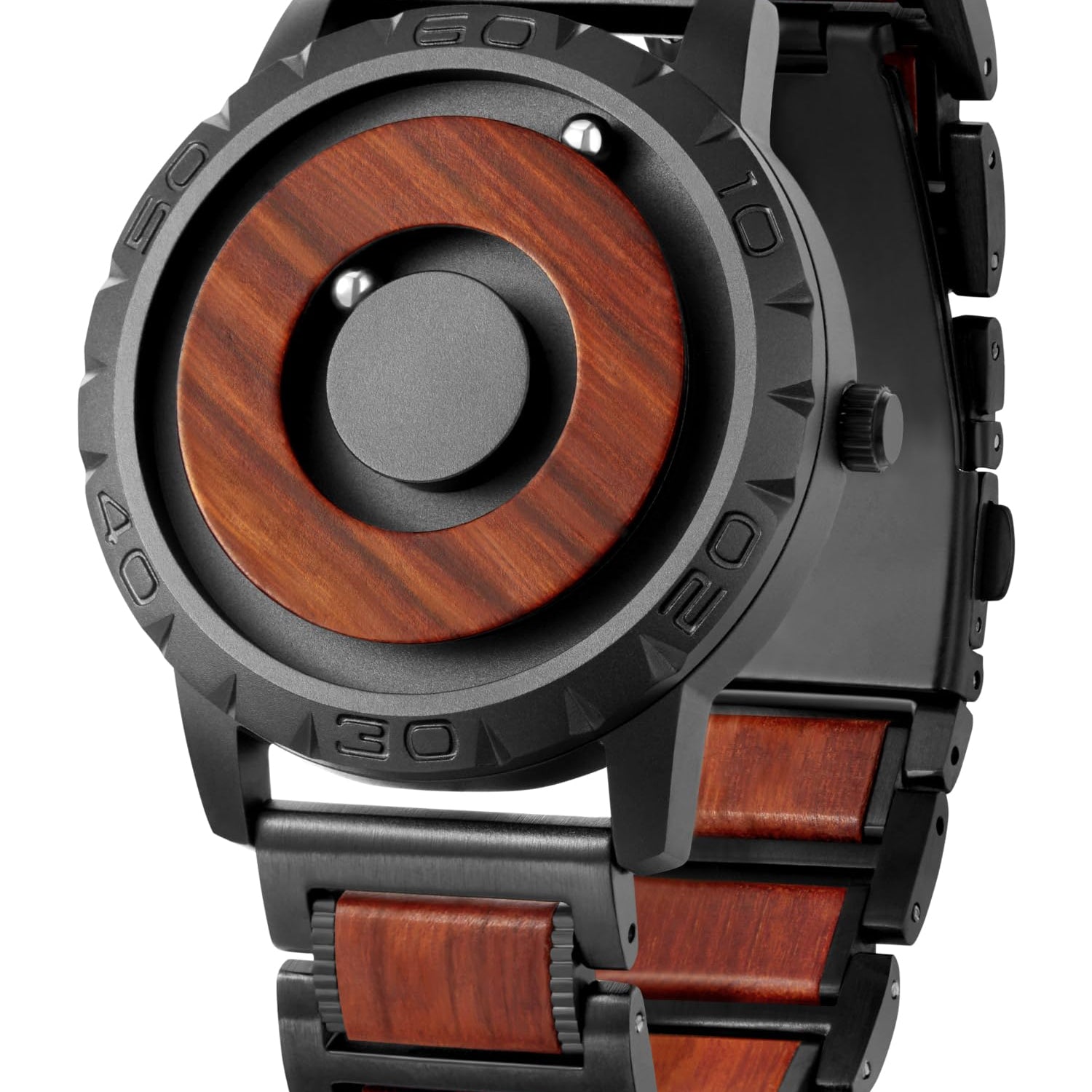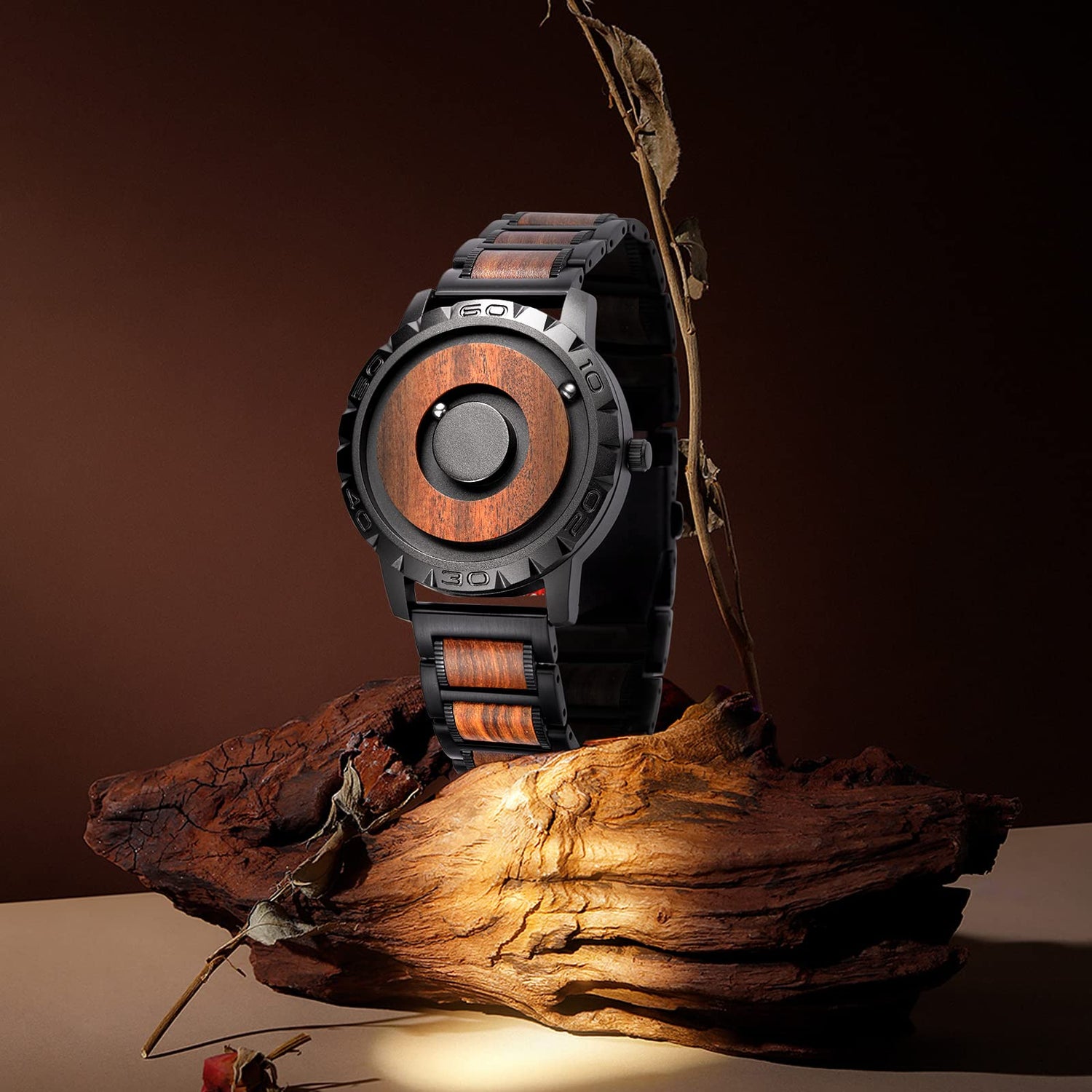 - Futuristic Men's Watches: 2 spheres float above the 40mm dial with a 20mm adjustable Wood strap - inner=minute, outer=hour, breaking convention and ensuring time accuracy & strong magnetic force with a unique fashion design