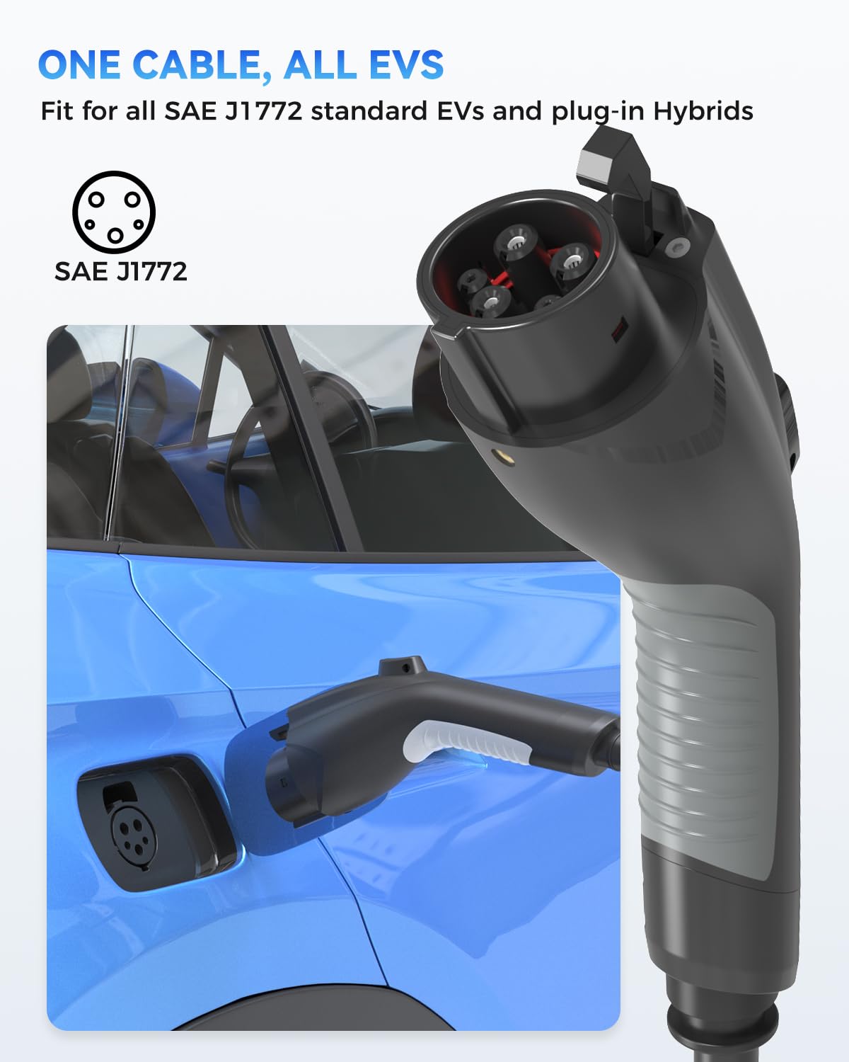 - 【Sturdy EV Charging Cable】Made from high-quality 100% copper TPE, with solid J1772 connectors, this ev charging extension cord is built for durability. Stronger than most, it lasts longer and is IP66 waterproof, making it reliable in any weather