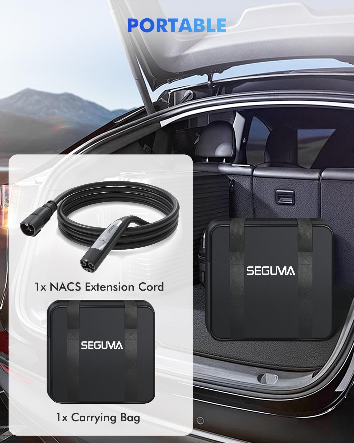 - 【Tesla Vehicles Compatibility】The Seguma 240V nacs extension cord works perfectly with your tesla model 3/Y/S/X/Cybertruck. An ideal tesla accessories for the Tesla owners