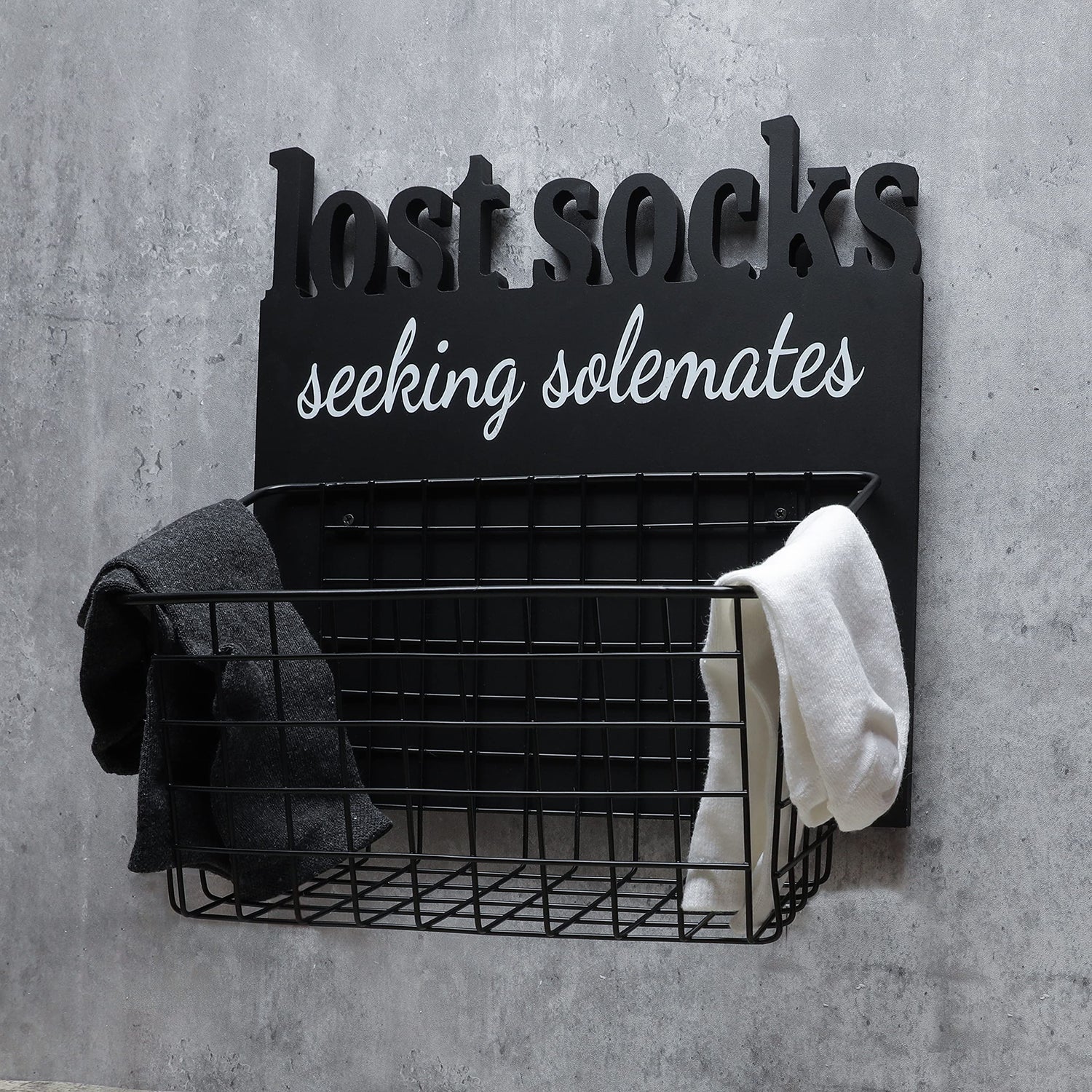 - Perfect size - 12" x 11" x 6" Iron basket Can hold more socks. The grid basket design allows you to find your lost socks faster. laundry room sign not only clears the clutter, it adds to any cute room decor