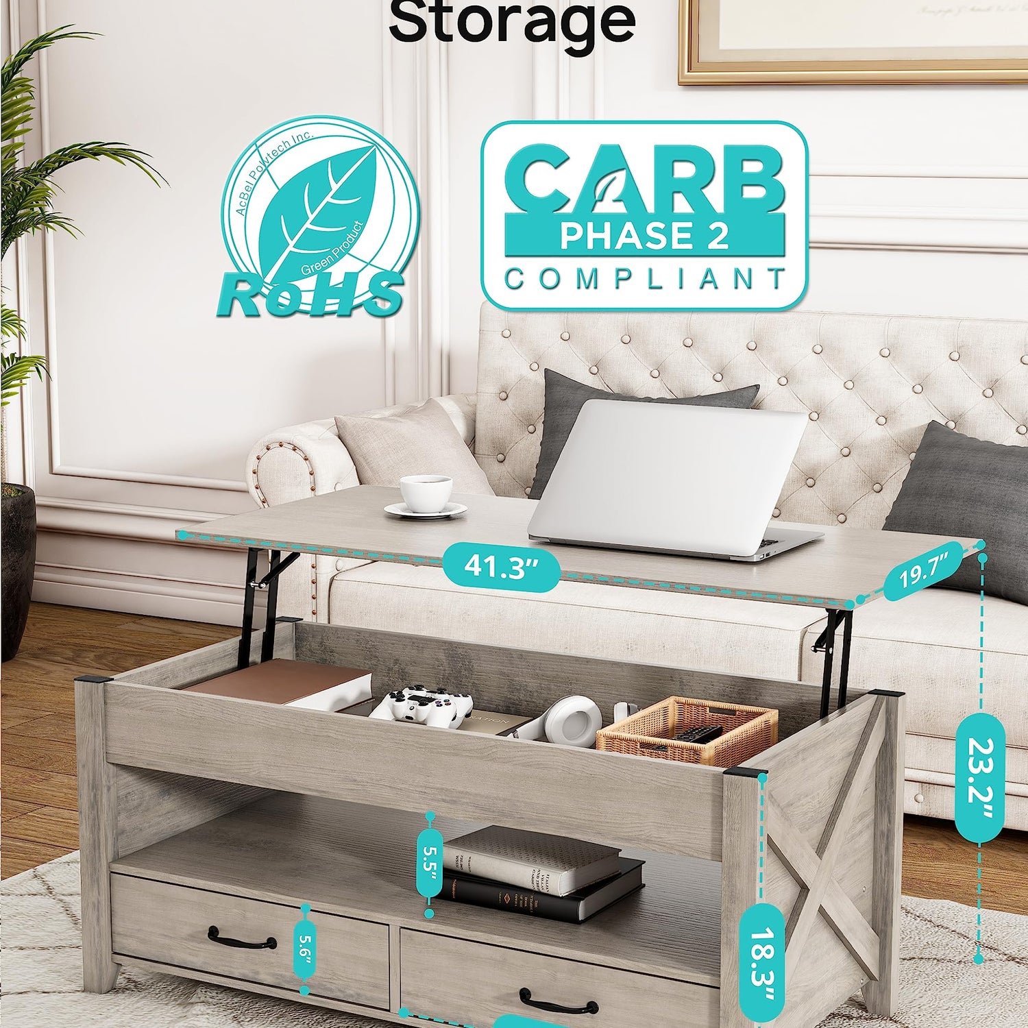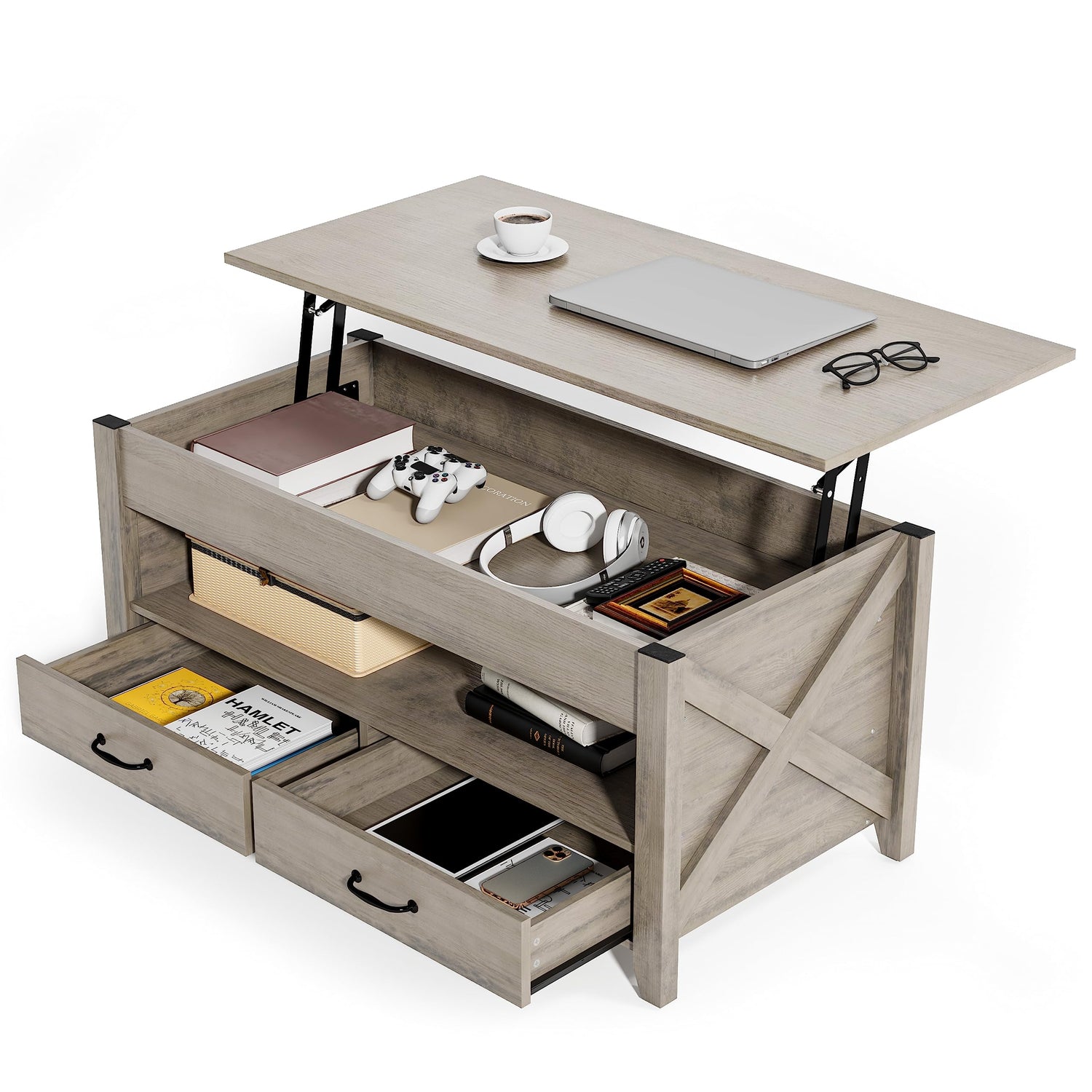 - Extra Storage Made Easy: Sized at 41.3” W x 19.7" D x 18.3" H, the large lift-top coffee table surprises with its extra roomy storage. Keep your things in two spacious drawers: easily access snacks and books from the middle open shelf, or quietly store your most important possessions in the hidden storage compartment.