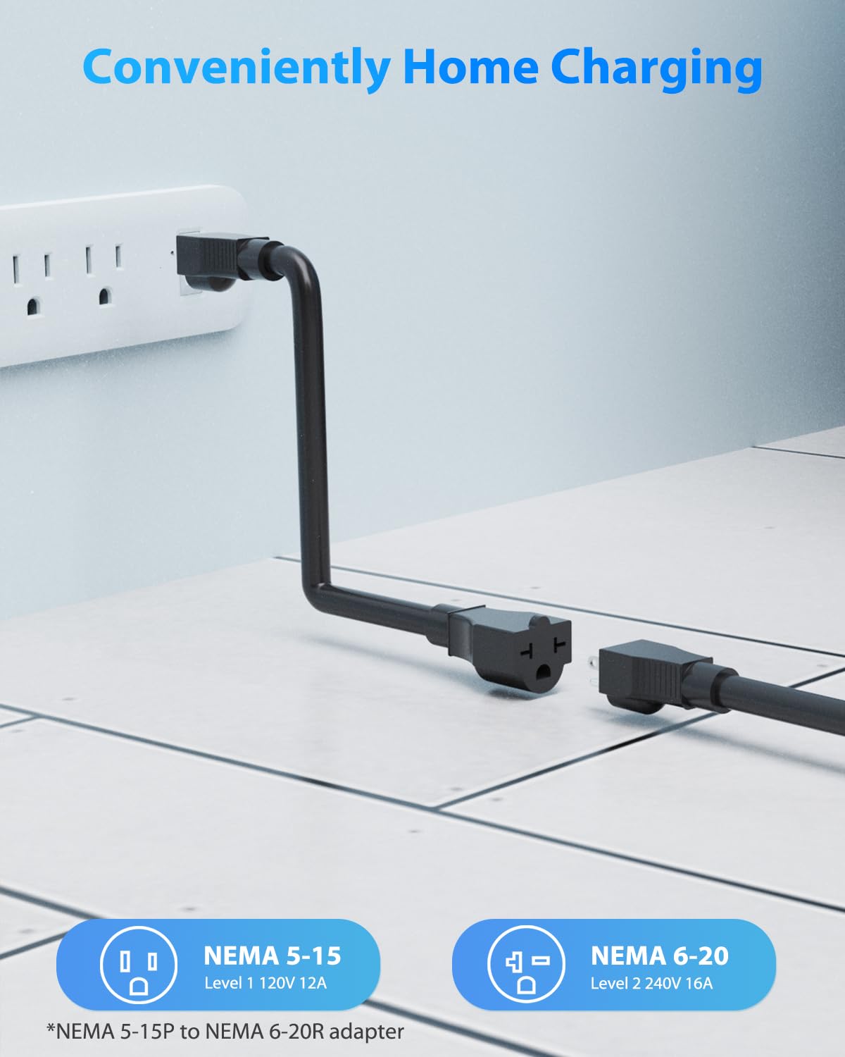 - 【Convenient to Use】This portable charger has both NEMA 6-20 (220V or 240V) and NEMA 5-15 (110V) plugs for you to use, and the included bag makes it easier to carry on the go. It also has a 25ft cable length, you can use it flexibly from anywhere in the garage or driveway.
