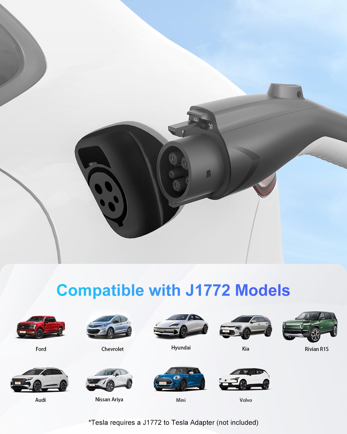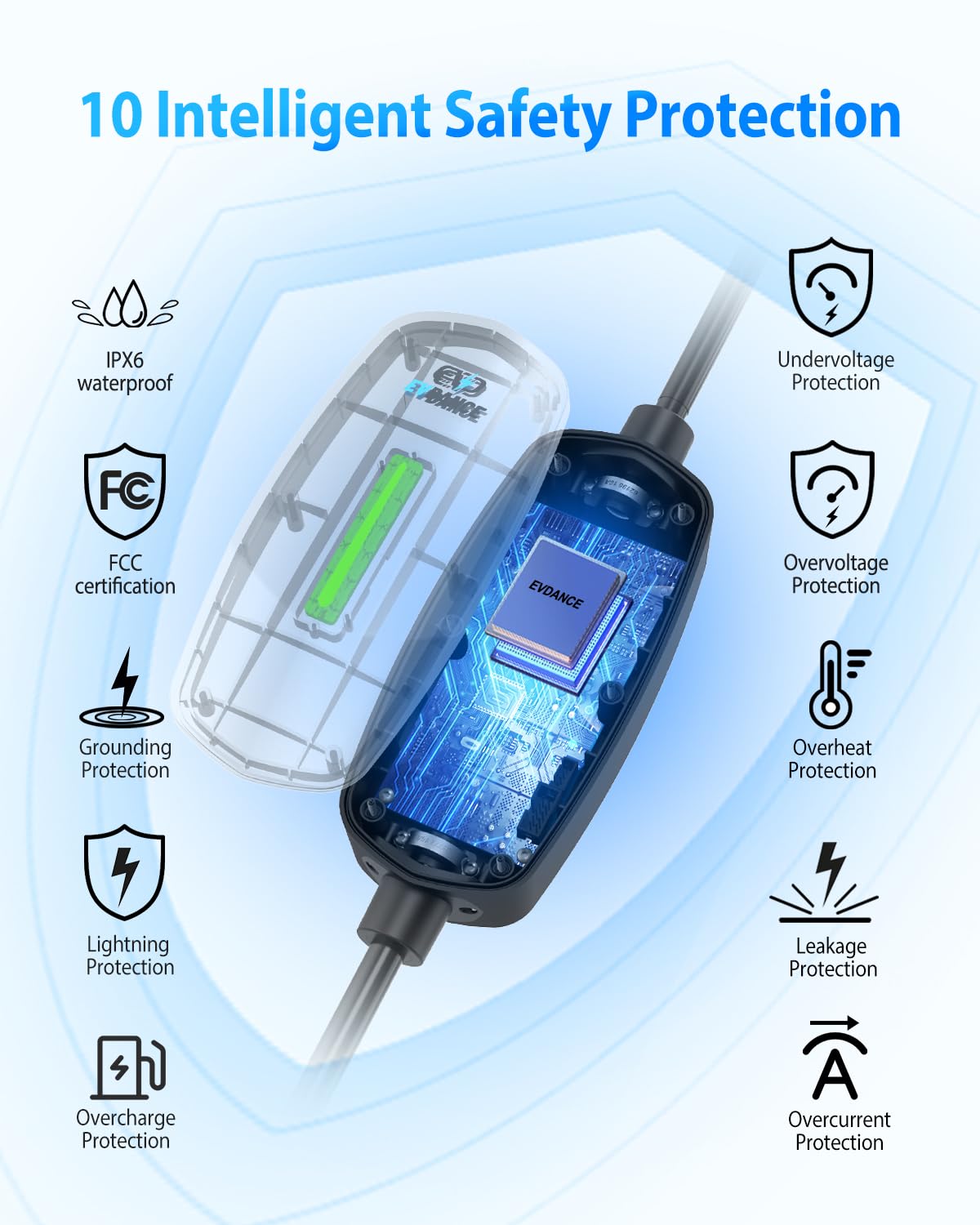 - 【Superior Performance】EVDANCE 16Amp Level 1 & Level 2 EV charger is compatible with J1772 electric vehicles and plug-in hybrid vehicles (North American Standard), it is 4x faster than other 8A L1 EV chargers. *Tesla requires a SAE J1772 adapter.