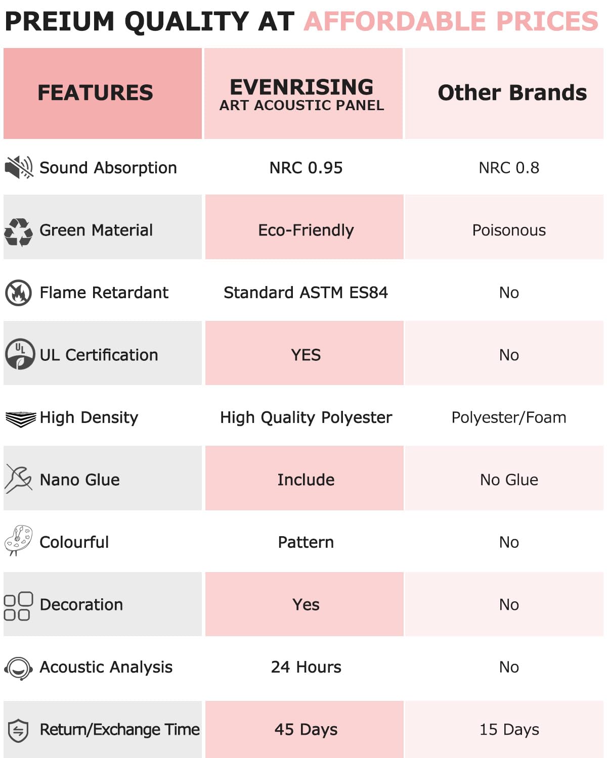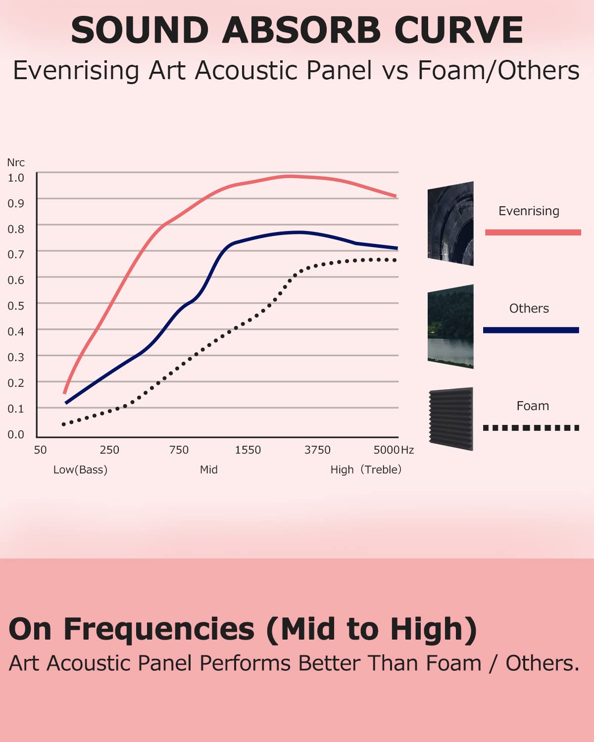 - [UNIQUE DESIGN] Compared to other art acoustic panel, our art panels are safer,lighter and brighter. You don't have to worry about uncertified products affecting your health.No harm to babyEvenrising acoustic art made of 100% recycled material, the surface is heat-treated, the texture is smooth and durable.