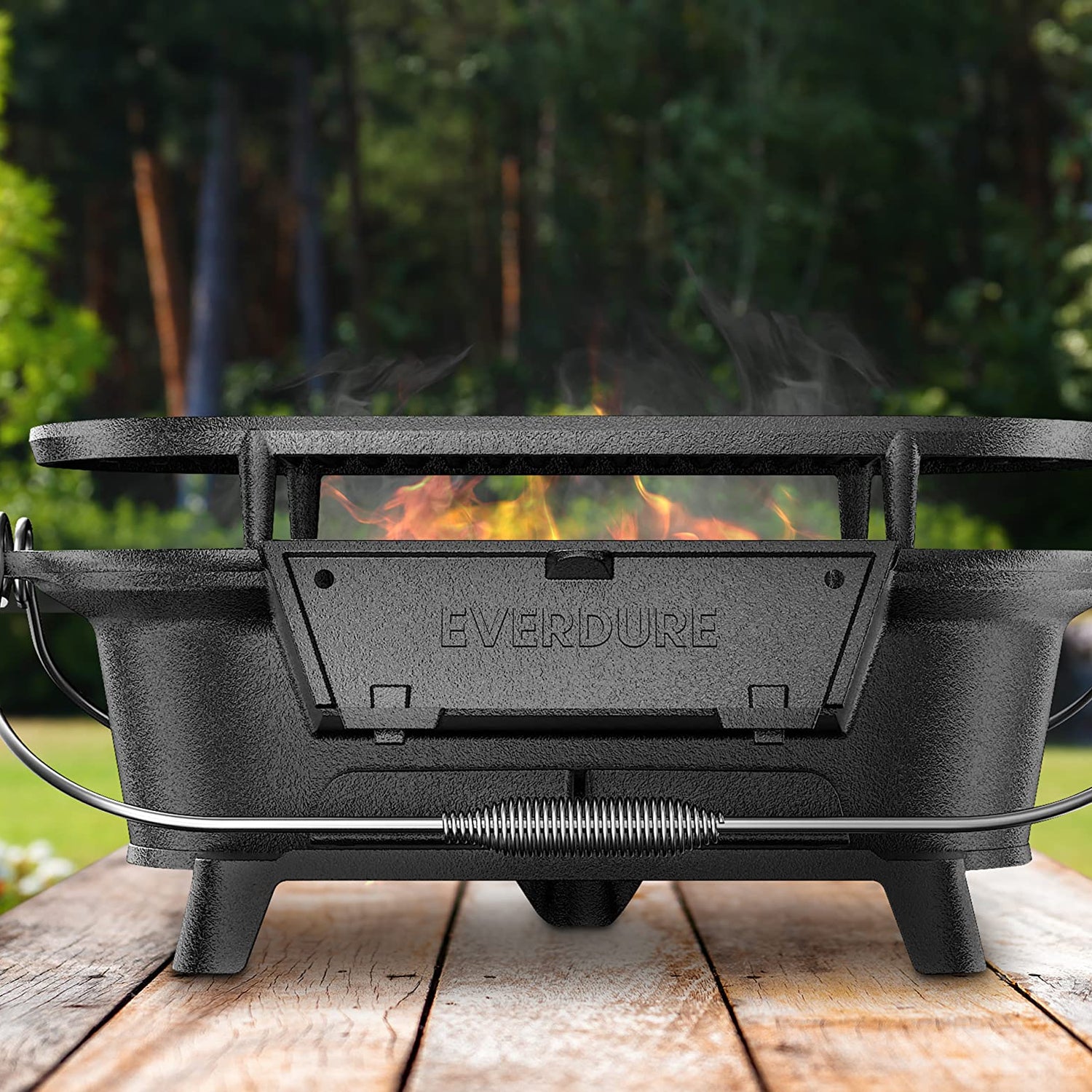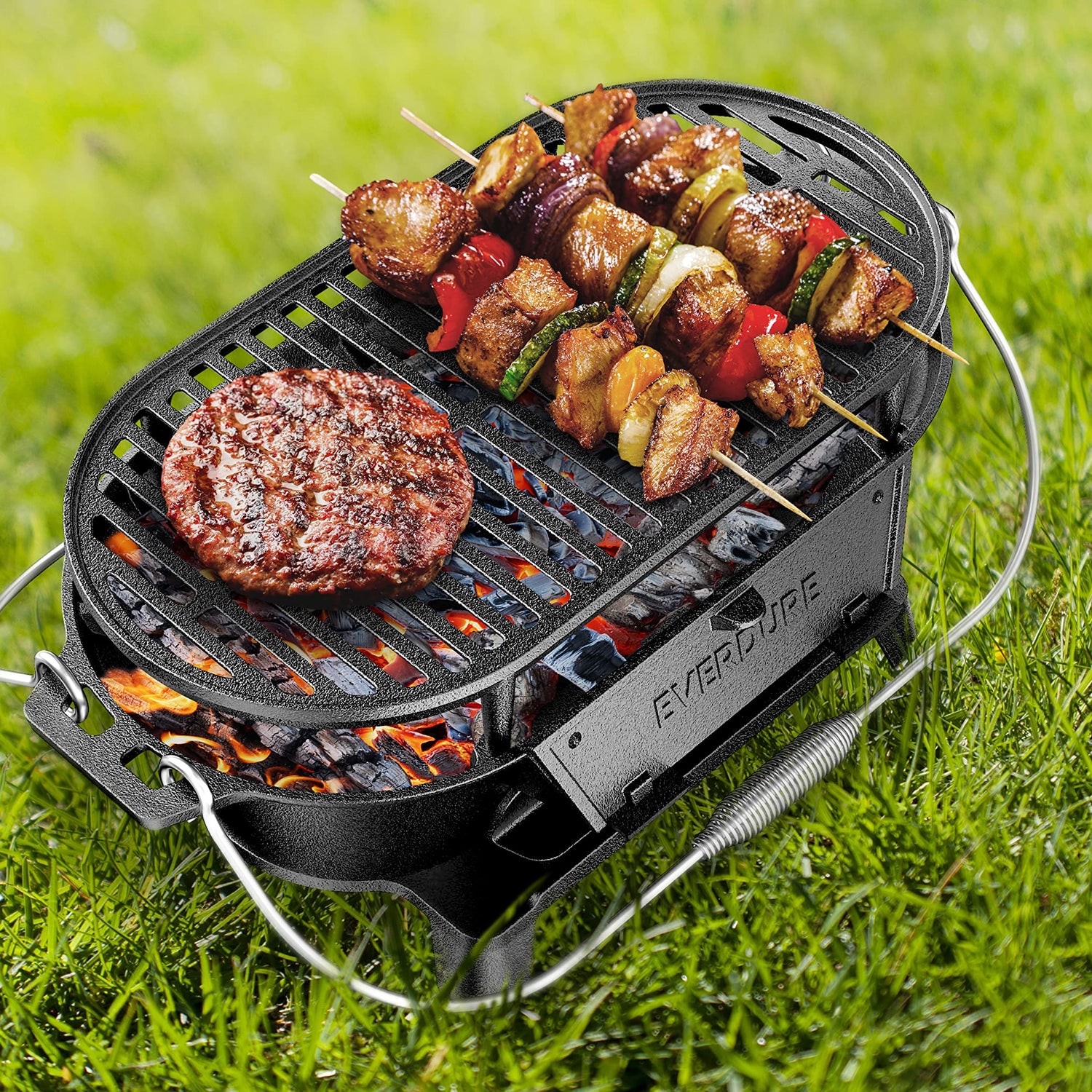 Everdure Oval Cast Iron Grill & Cover – Outdoor, Portable Charcoal Grill and Tabletop Cast Iron Skillet - 100% Cast Iron, Enameled, Durable, Small Charcoal Grill, Camping Stove, Hibachi Grill