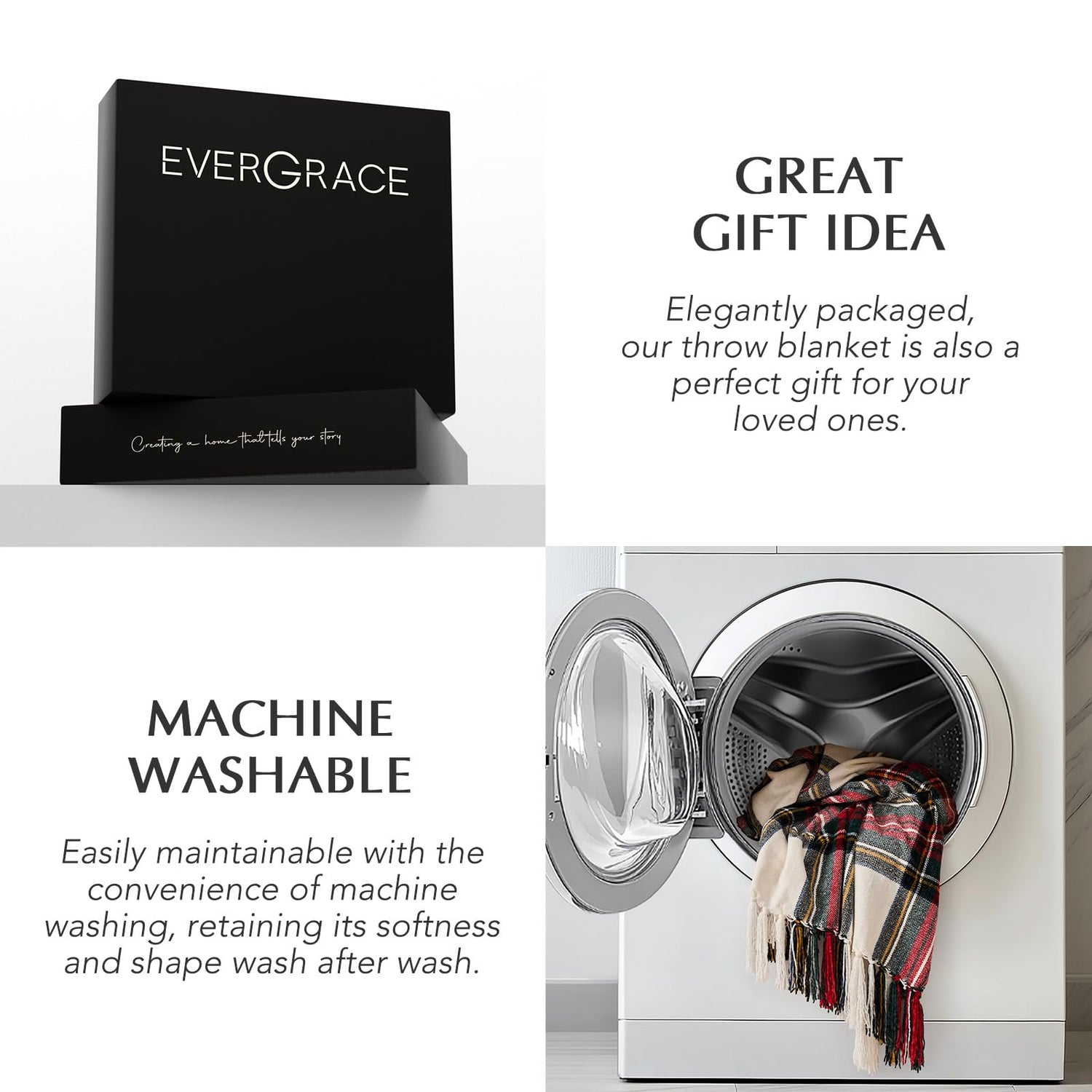 - Christmas Buffalo Plaid Design - EVERGRACE Christmas throw blanket boasts a delightful Christmas plaid design that will instantly bring a touch of festive charm to any room. Made with the finest materials, this throw blanket not only adds a cozy and warm layer to your space but also serves as a stunning decorative piece that will impress your guests during holiday gatherings.