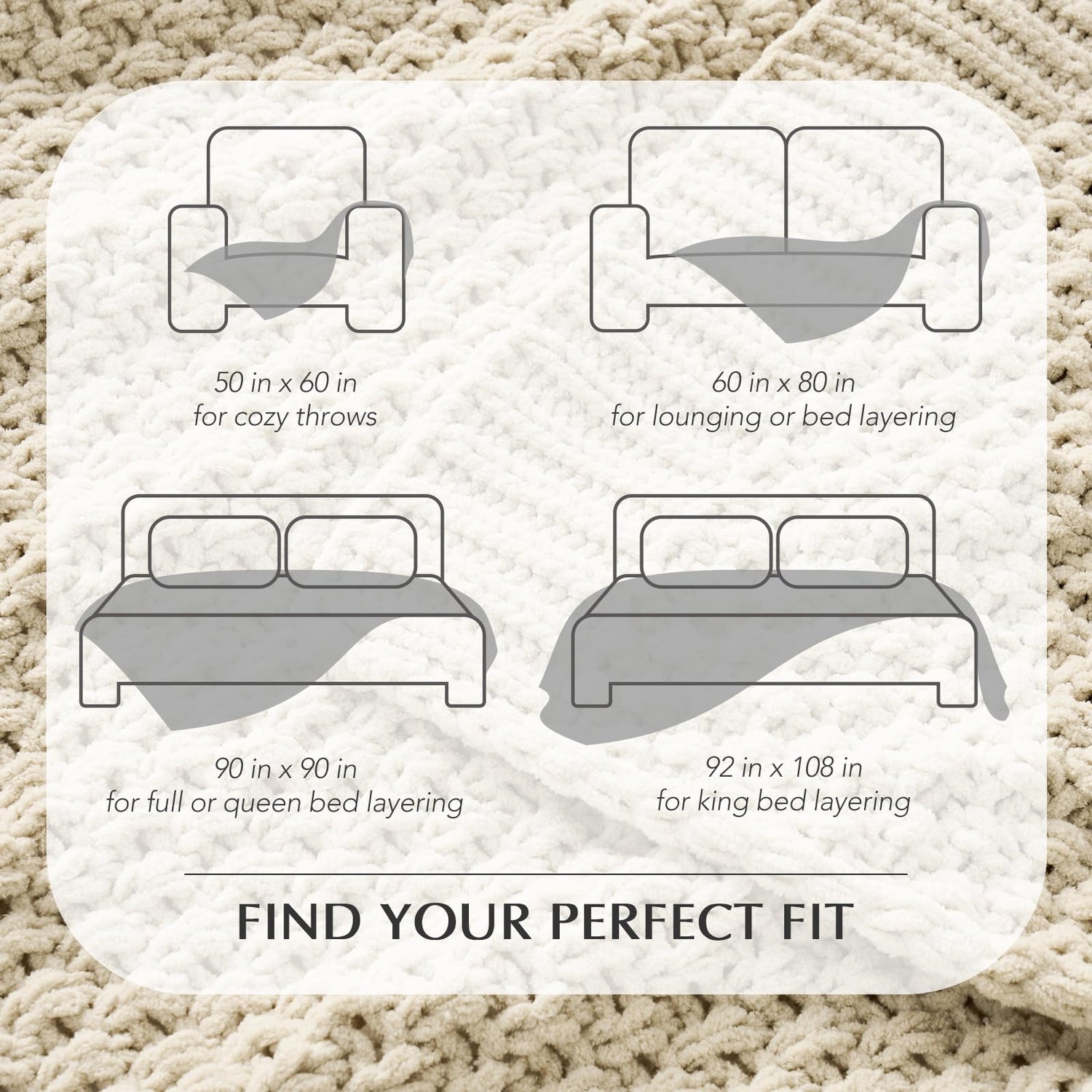- VERSATILE YEAR-ROUND STYLE Lightweight yet warm, this throw is ideal for all seasons. Whether draped across a sofa, folded at the foot of your bed, or wrapped around your shoulders, it adds warmth and texture to every space. Available in multiple sizes to suit your space.