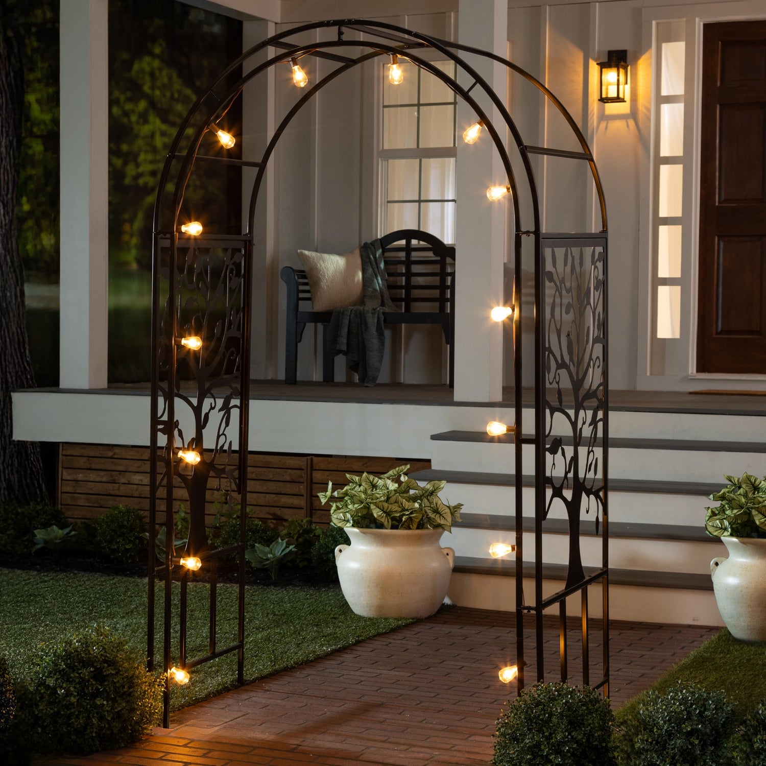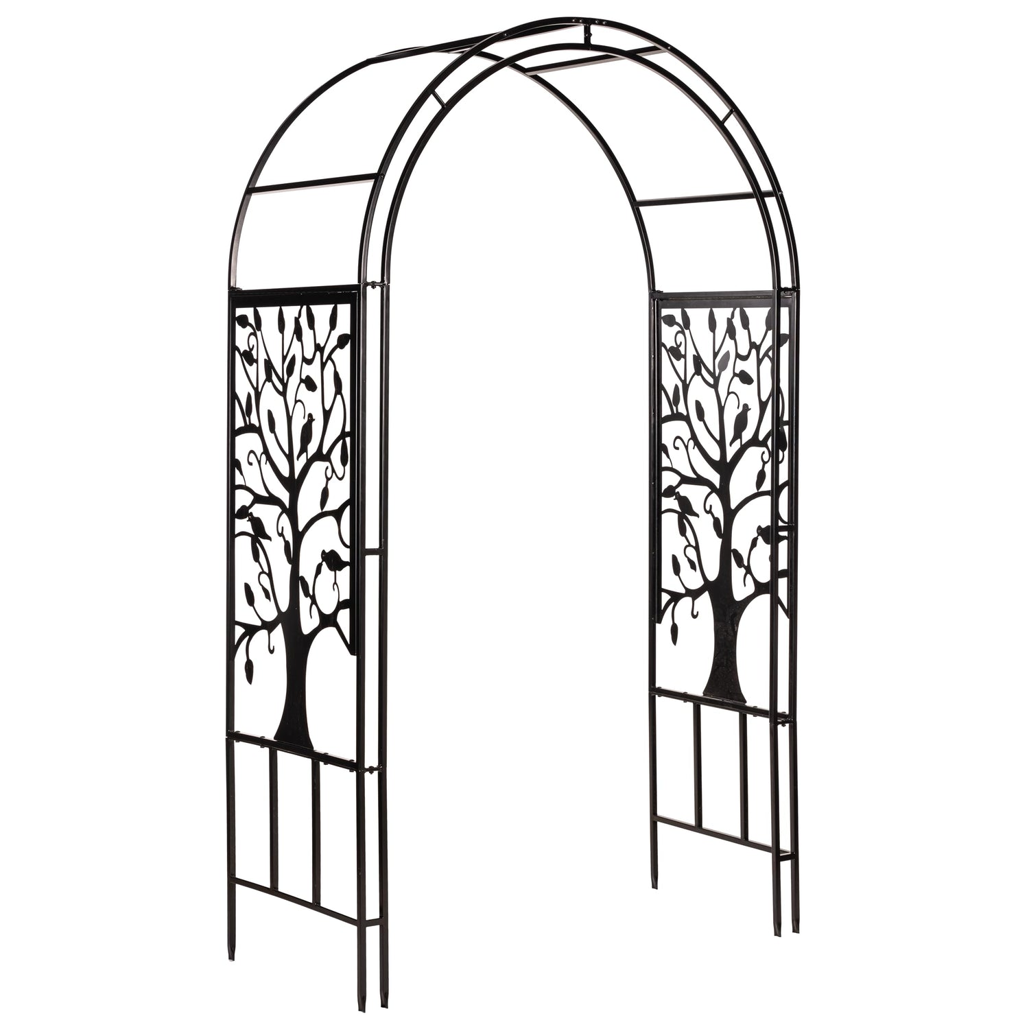 Evergreen Plow & Hearth Tree of Life Garden Arbor - 7 Feet Tall | Slim Metal Arch with Iron Trellis for Climbing Plants | Elegant Wedding Arbor | Outdoor Patio & Garden Decor