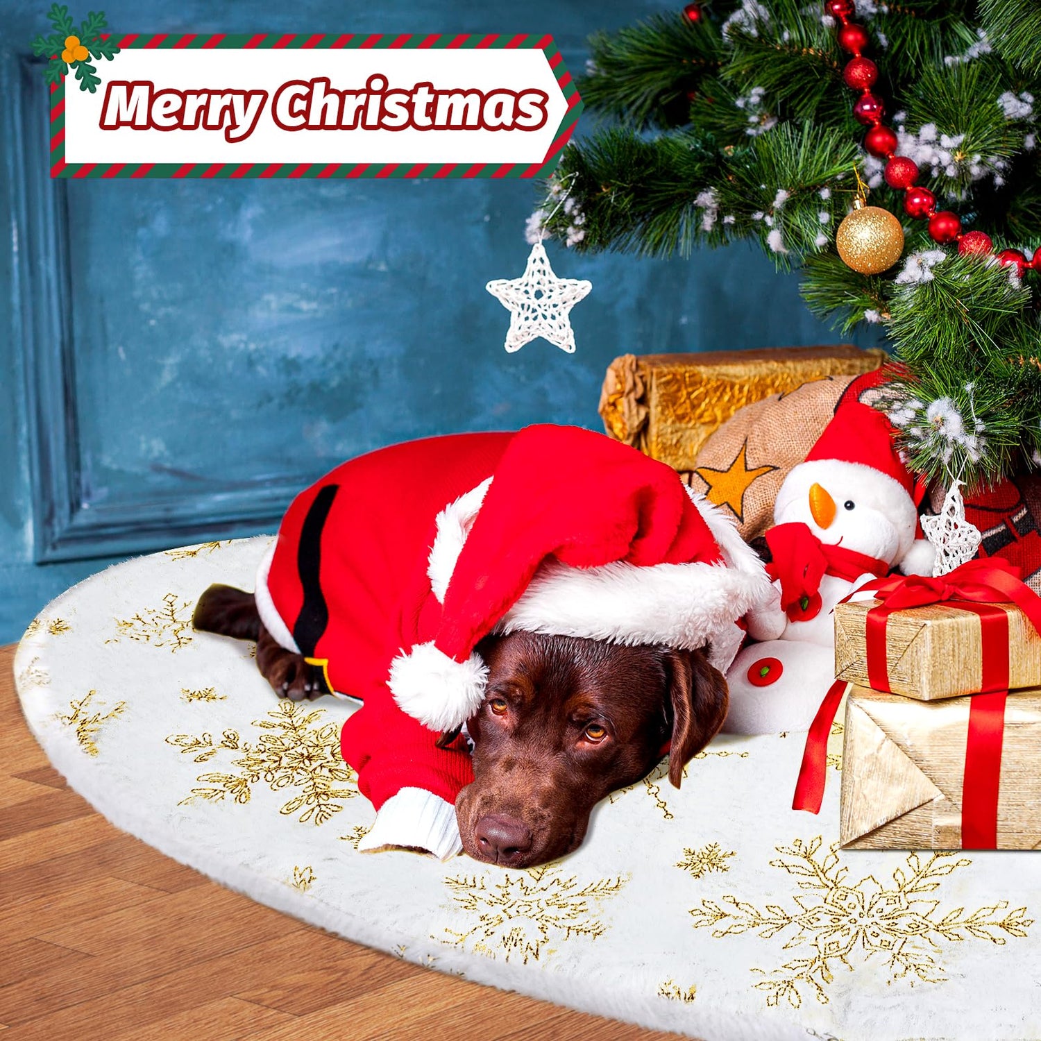 - 【Ideal Size for Christmas Tree】 The 36 inch Christmas tree skirt is suitable for trees up to 7.5 feet in height. The skirt elegantly wraps around the base of the Xmas tree, its premium fluff and snowflakes enriching the seasonal decorations