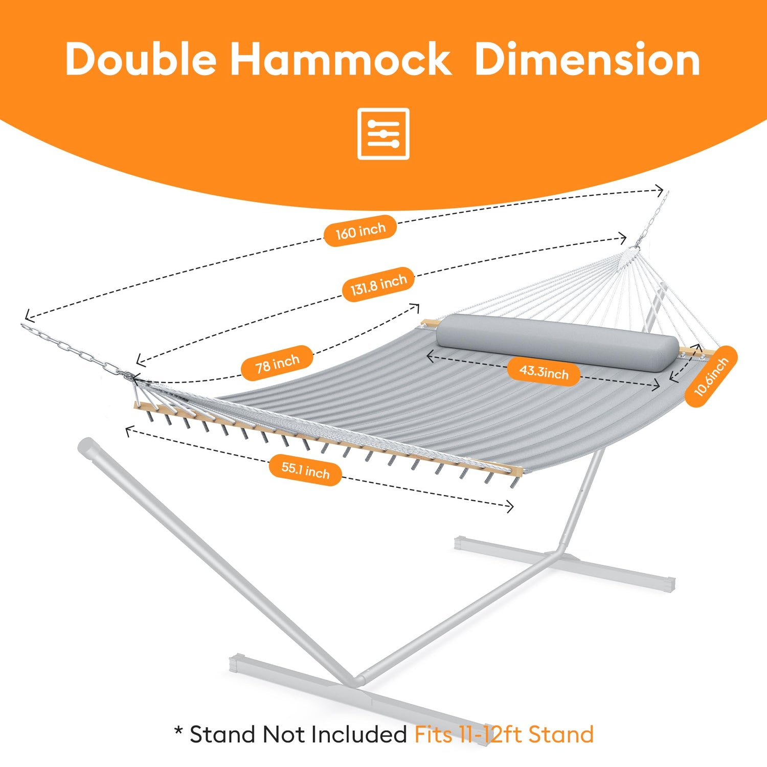- Simple Setup and Quick Installation: Thea hammocks are easy to set up. With 14 inch chains at each end, it can be easily attached to a hammock stand or securely hung between two trees. No complicated tools or skills are required. Whether you're a seasoned outdoorsman or a beginner, you'll be able to enjoy your hammock in minutes, bringing the comfort of home to any outdoor location.