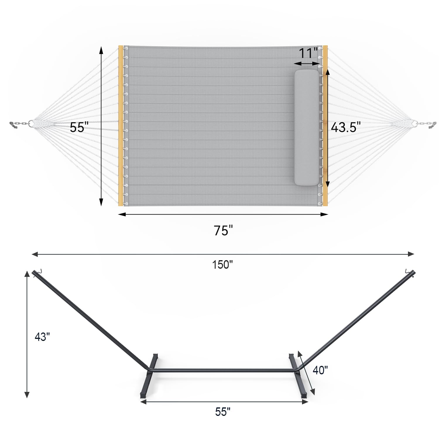 Everyfun Double Hammock with Stand, 2 Person Cotton Rope Hammock with Removable Polyester Pad, 500LBS Capacity, Portable & Adjustable Design, Includes Storage Bag, Indoor Outdoor Use,Dark-Gray
