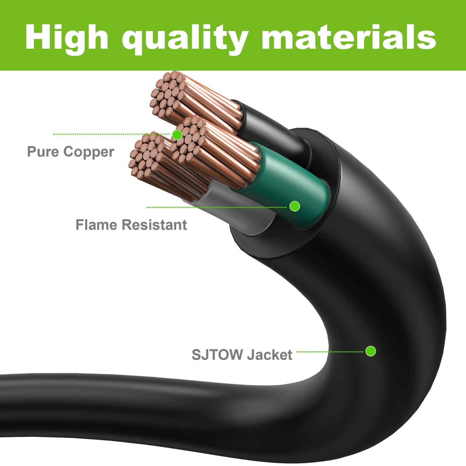 - Hight Quality: 300 Volt thermoplastic SJTOW Jacket and 12 AWG x 3C all-copper wires, features excellent abrasion, oil and moisture resistance and flexibility. It should last for a long time even with rugged use.
