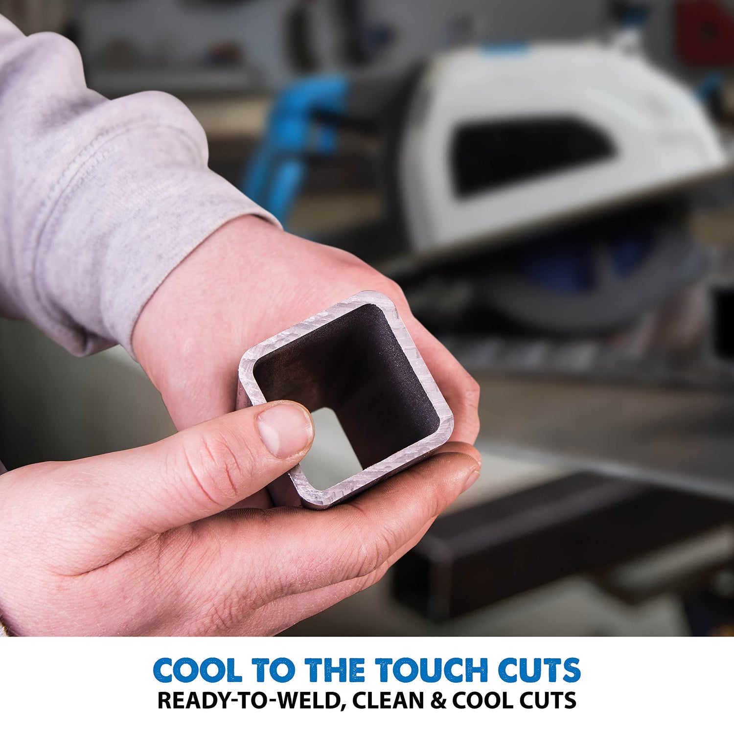 - Comes equipped with a 8-1/4 inch mild steel capable circular saw blade. Providing an instantly workable finish and produces virtually no heat, no burr, and no sparks.
