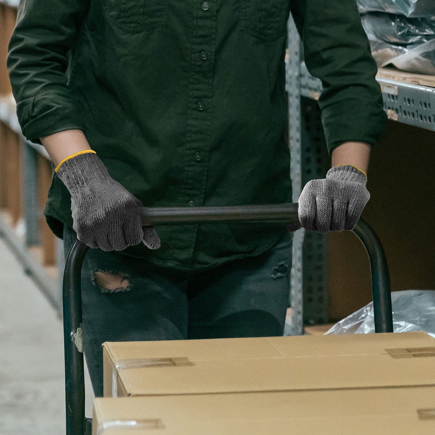 Evridwear Cotton Work Gloves Light-duty String Knit BBQ Glove Liner for Outdoor Cooking, Painting, Gardening Men & Women 10 Pairs (Grey, Large)