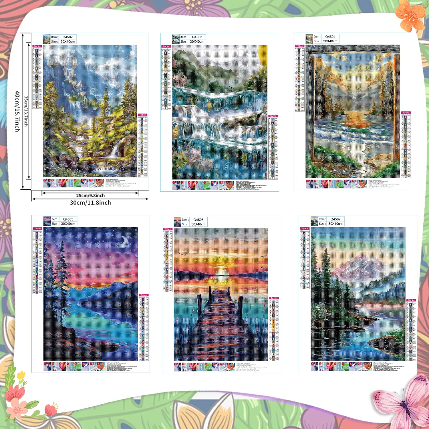 EWJRNSF 6 Pack 5D Diamond Painting Kits for Adults, Landscape Diamond Arts Kits Diamond Art Sets,Gem Painting by Number Kits for Adults Beginners Home Wall Decor 11.8x15.7 Inches