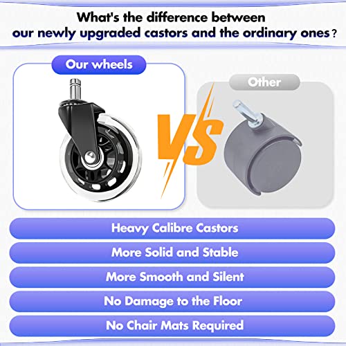 - UPGRADED WHEELS: Upgraded large caliber nylon casters, which are more solid and fashionable, more flexible for swivel rolling. Also, the caster is friendly to any floors and will not cause scratches. No floor mat is extra required. When swivel or rolling, there will be no abnormal noise, help you create a more efficient and silent working environment. The upgraded casters are not easy to fall off from the chair, durable enough for years of use