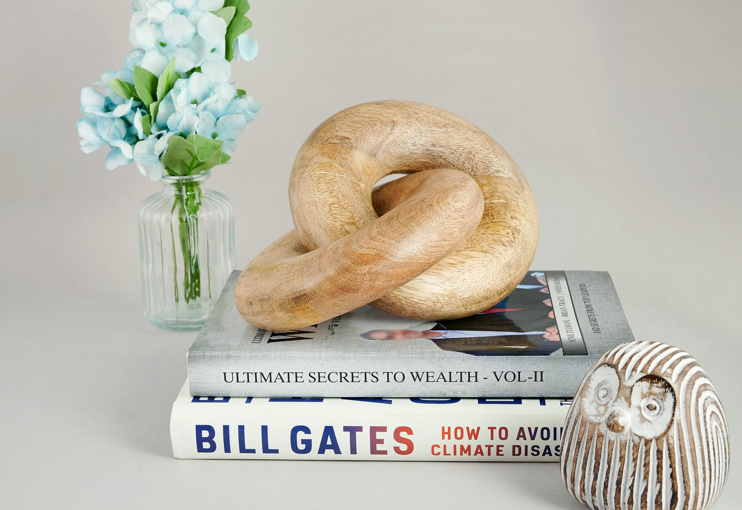 Eximious India 2 Knot Coffee Table Decor Home Decor Console Table Decor Items Book Shelf Decor Accents Living Room Wood Knot Decor Chain Link Decor (Natural Wood)