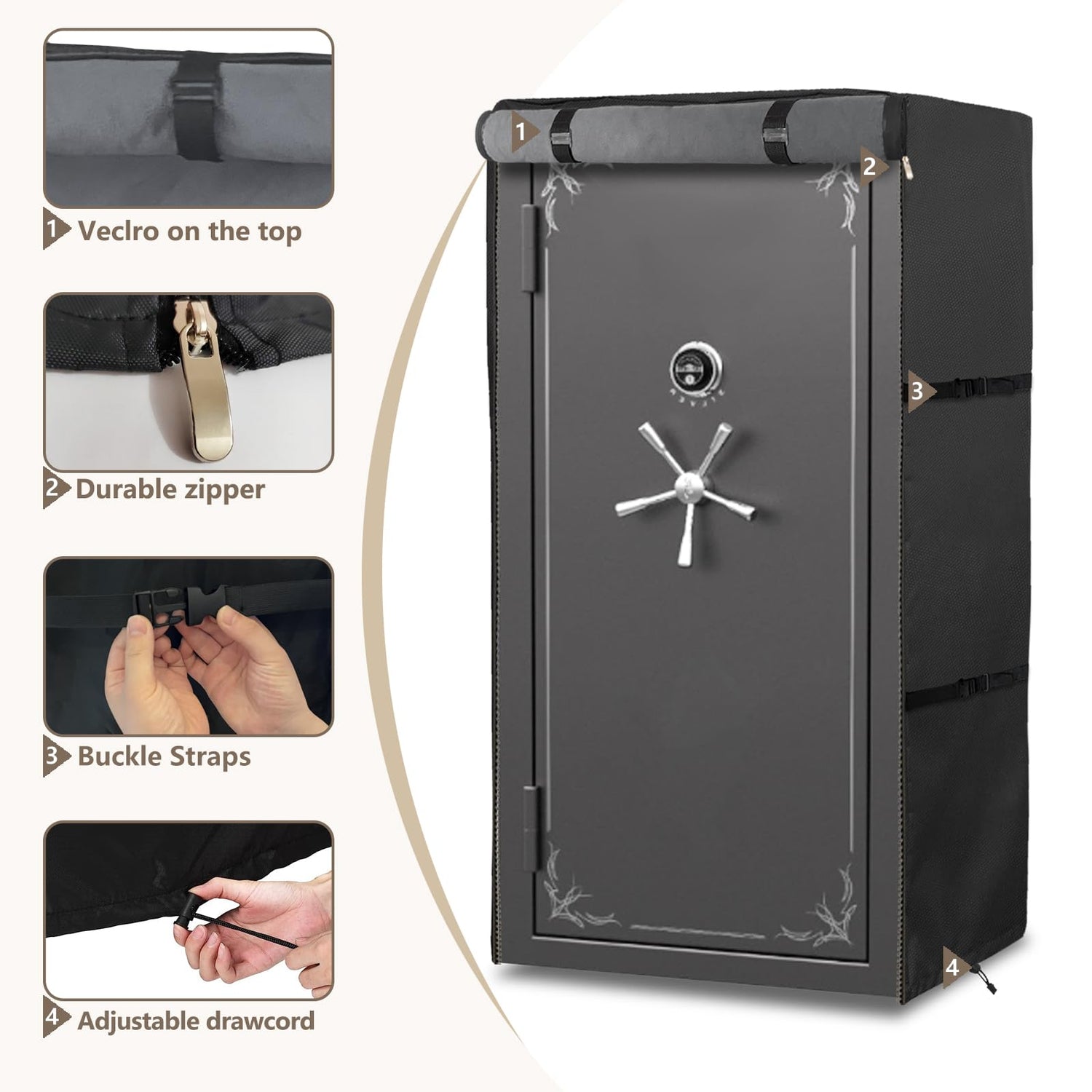 - Easy to Use and Fasten:The side of the gun safe cover has 2 strong handles for easy to install and remove.And 2 buckle straps on the side can be adjusted to achieve tight fixation and perfect fit