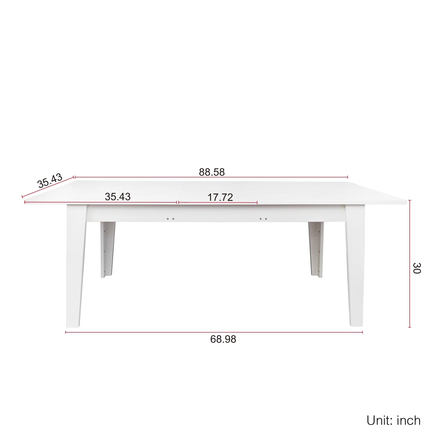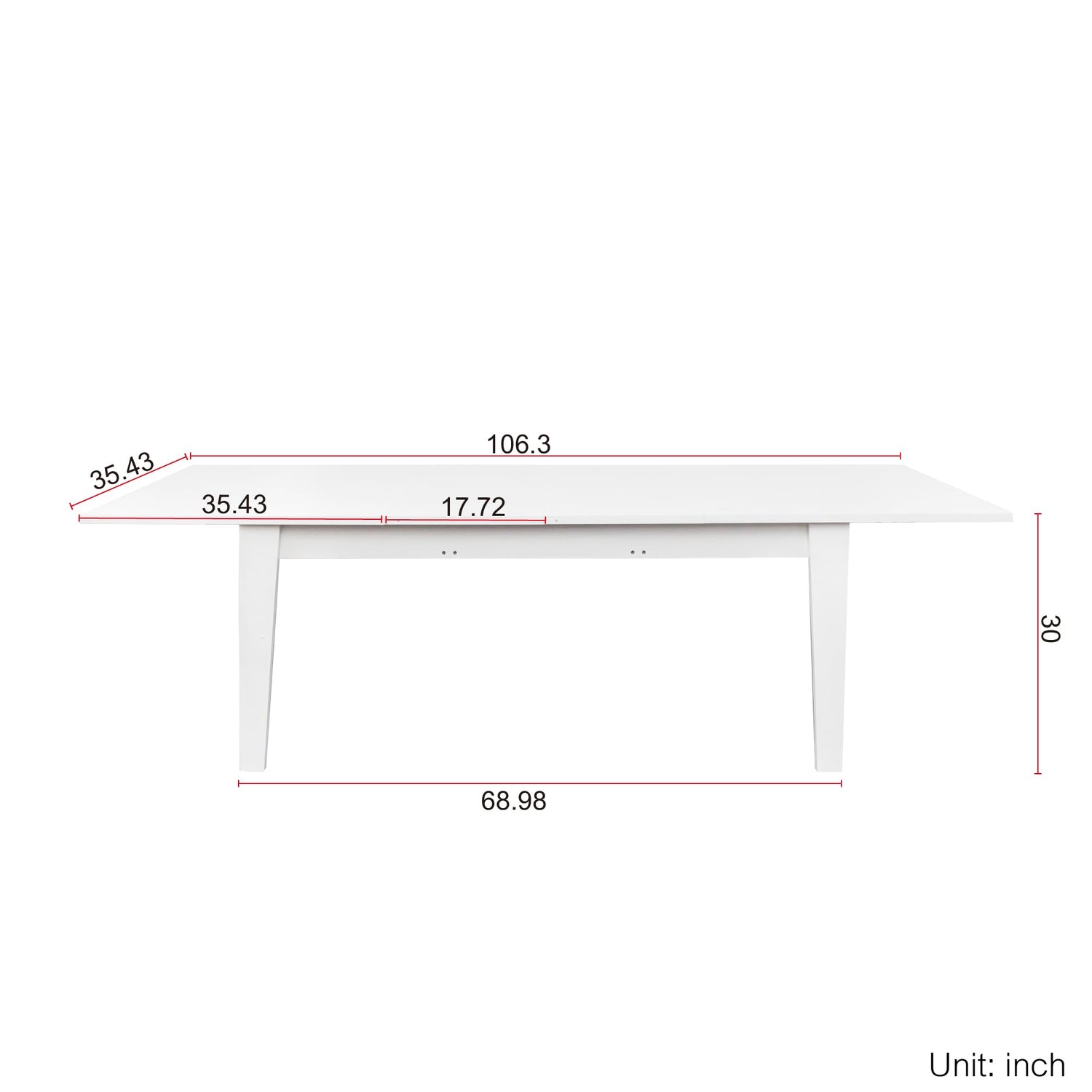 - Modern Extandable Dining Table:Before extension, The dining table measures 35.43''W x 70.87''D x 30''H. After extension,The dining room table measures 35.43''W x 106.3''D x 39.37''H.With flexible lengh design allow this perfect stretchable table to bring the elegance and avant-garde style to your kitchen, living room, or dining room.Material:MDF Wood