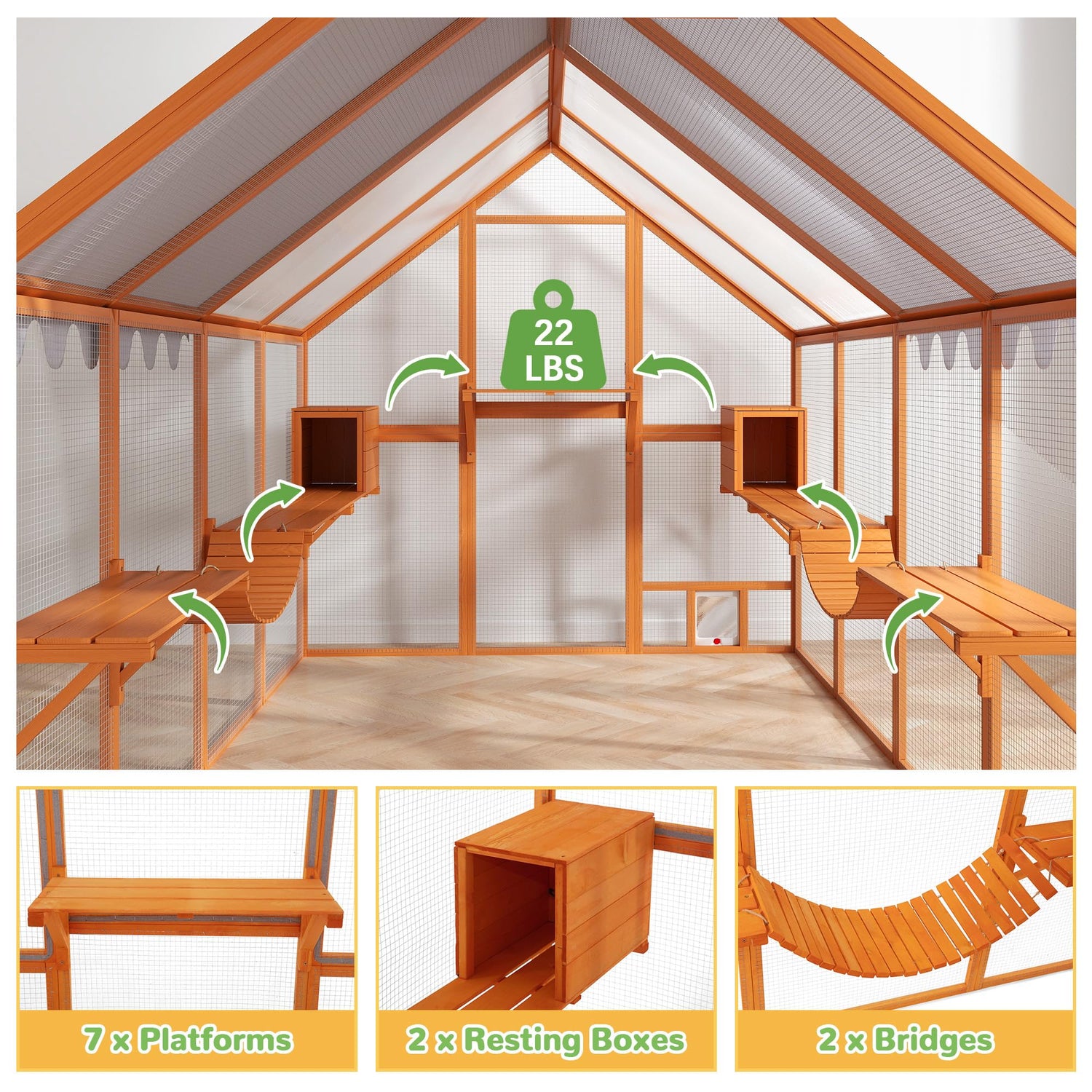 - 【Sturdy & Easy to Assemble】Crafted from durable pine wood and heavy-duty galvanized wire mesh, this large cat run offers robust safety and ventilation. Assembly is straightforward with an easy-to-follow manual. Note: The extra large catio is shipped in 2 separate boxes, and arrival times may differ!