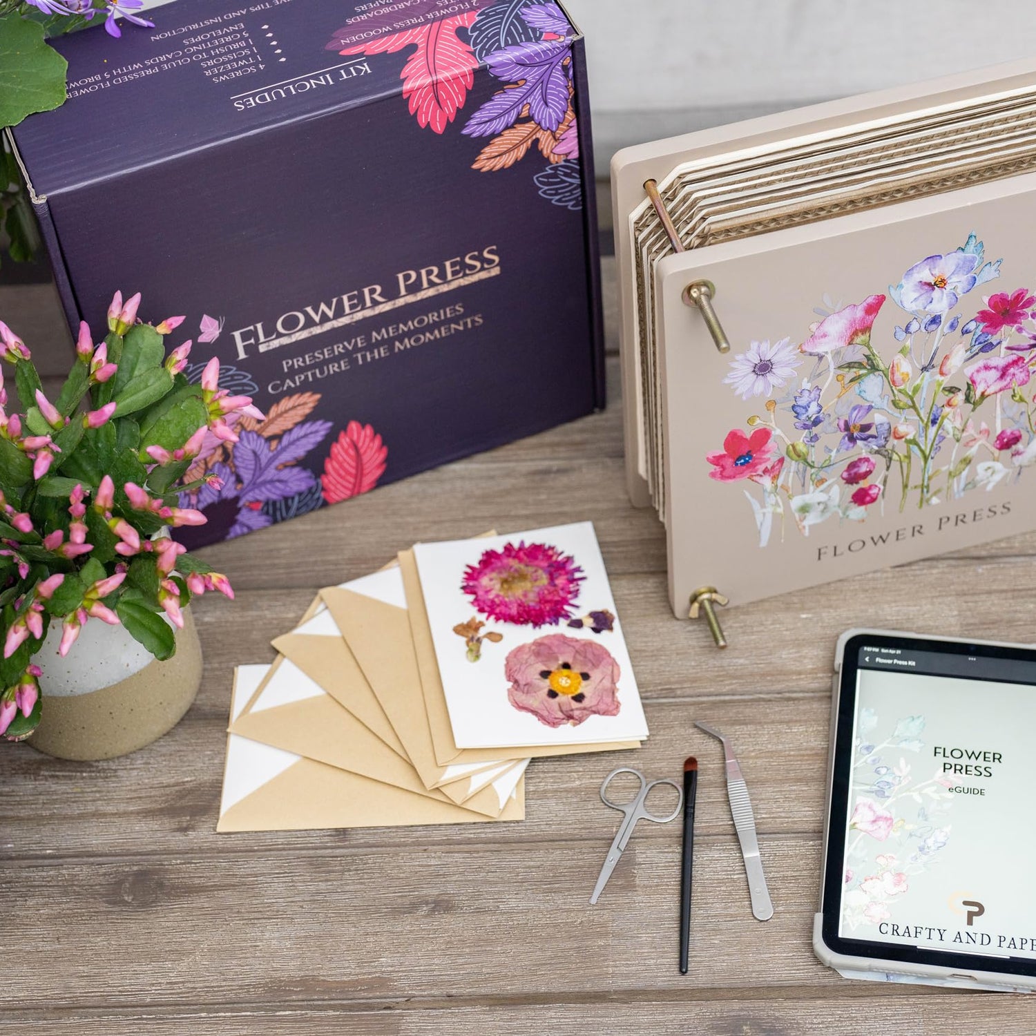 - Complete Pressing Set: Our pressed flowers kit features essential tools like scissors, tweezers, along with 30 blotting papers, 10 thick cardboards, an E-book guide and more; this craft kit is designed for efficient flower pressing and creative crafting