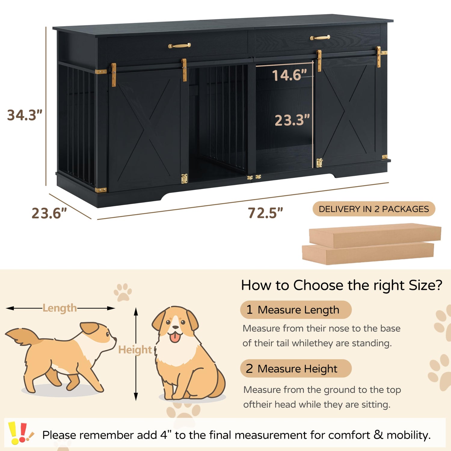 - Farmhouse Furniture Style Double Dog Crates: Featuring barn doors, farmhouse and bracket decor, the dog crate furniture is both modern and casual feel; minimalist design blends easily with existing interiors wherever it is placed