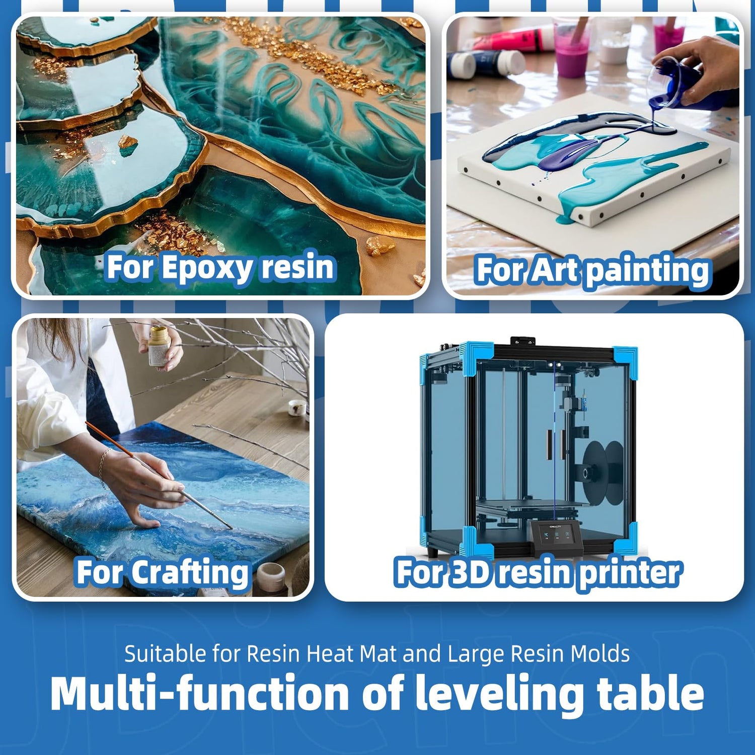 - Extra Large Resin Leveling Table: When using epoxy resin, when making acrylic pour paintings, when you making any project that requires a level surface and you're ruining your entire work because the table uneven surface, Are you feeling irritable? Jdiction Crafting Leveling Table coming!!! It will ensure perfect working surface for any craft project &epoxy resin & Art Painting & 3D Printer & self leveling resin .