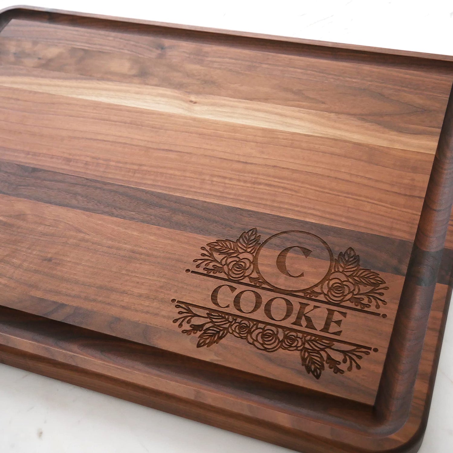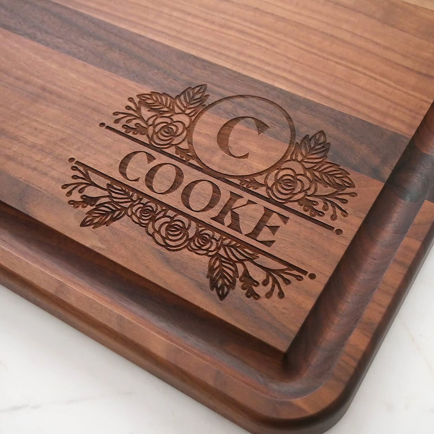 • Rest-assured quality is our priority. This extra large personalized cutting board butcher block in Walnut wood is Laser-engraved in house using a state of the art machine guaranteeing a perfect engraving every single time. Due to the nature of natural wood, every single cutting board is different from the other making it an even more special and unique personalized gift. Every person & family has their own story and the uniqueness of our custom engraved cutting boards is meant to represent that.