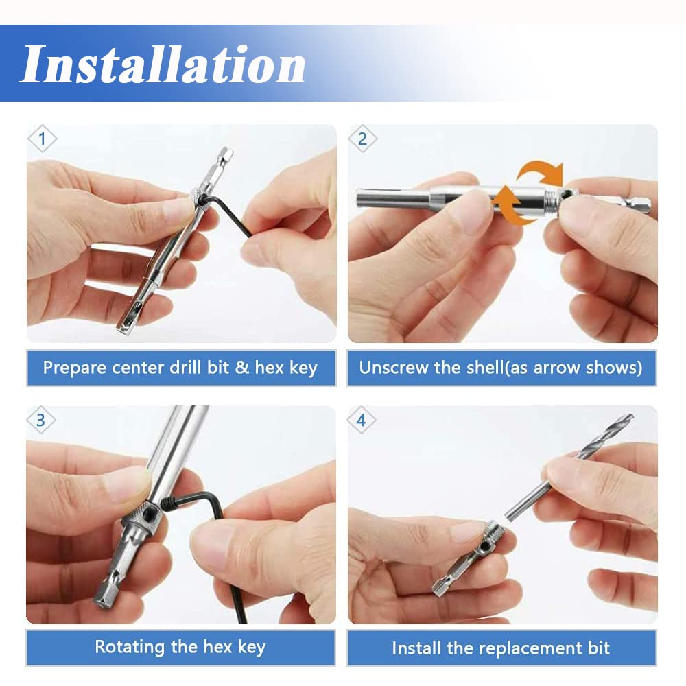 - Center Drill Bits: Bit is in a self-centering design,remove drill for easy replacement means less walking and more precise drilling
