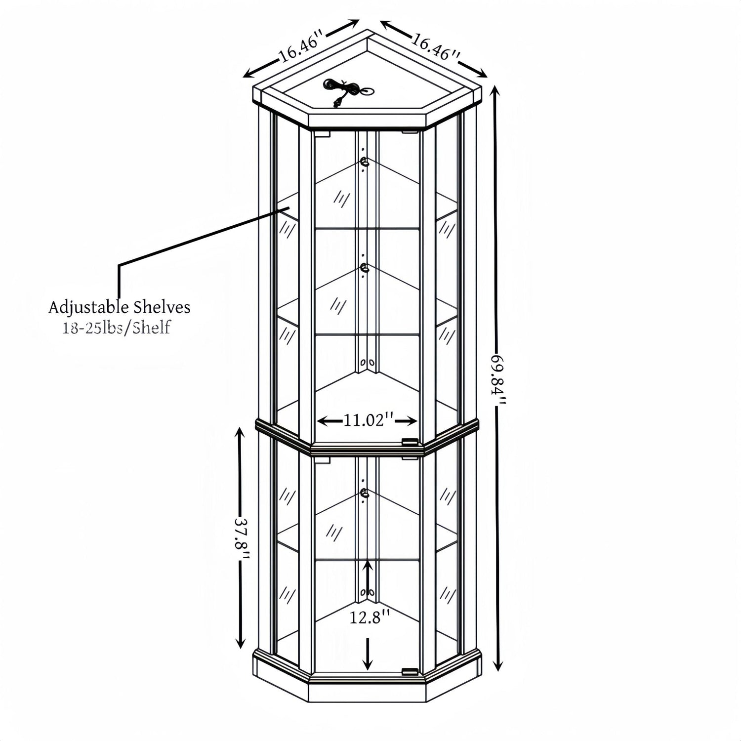 - [Space-Saving Corner Design] - Designed for maximum storage with a minimal footprint, this slim, space-efficient curio cabinet fits neatly into any corner. A perfect solution for organizing books, fine china, or memorabilia while optimizing floor space.