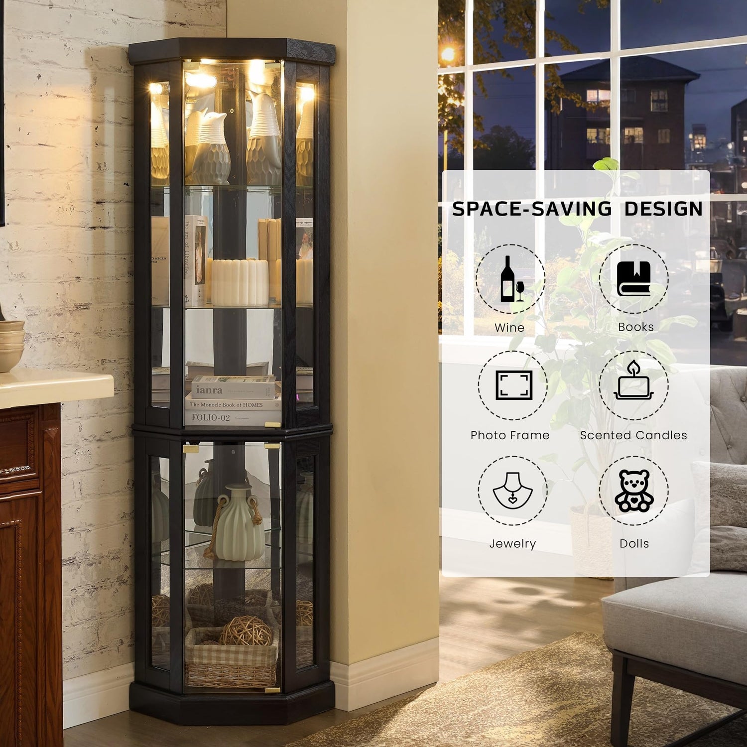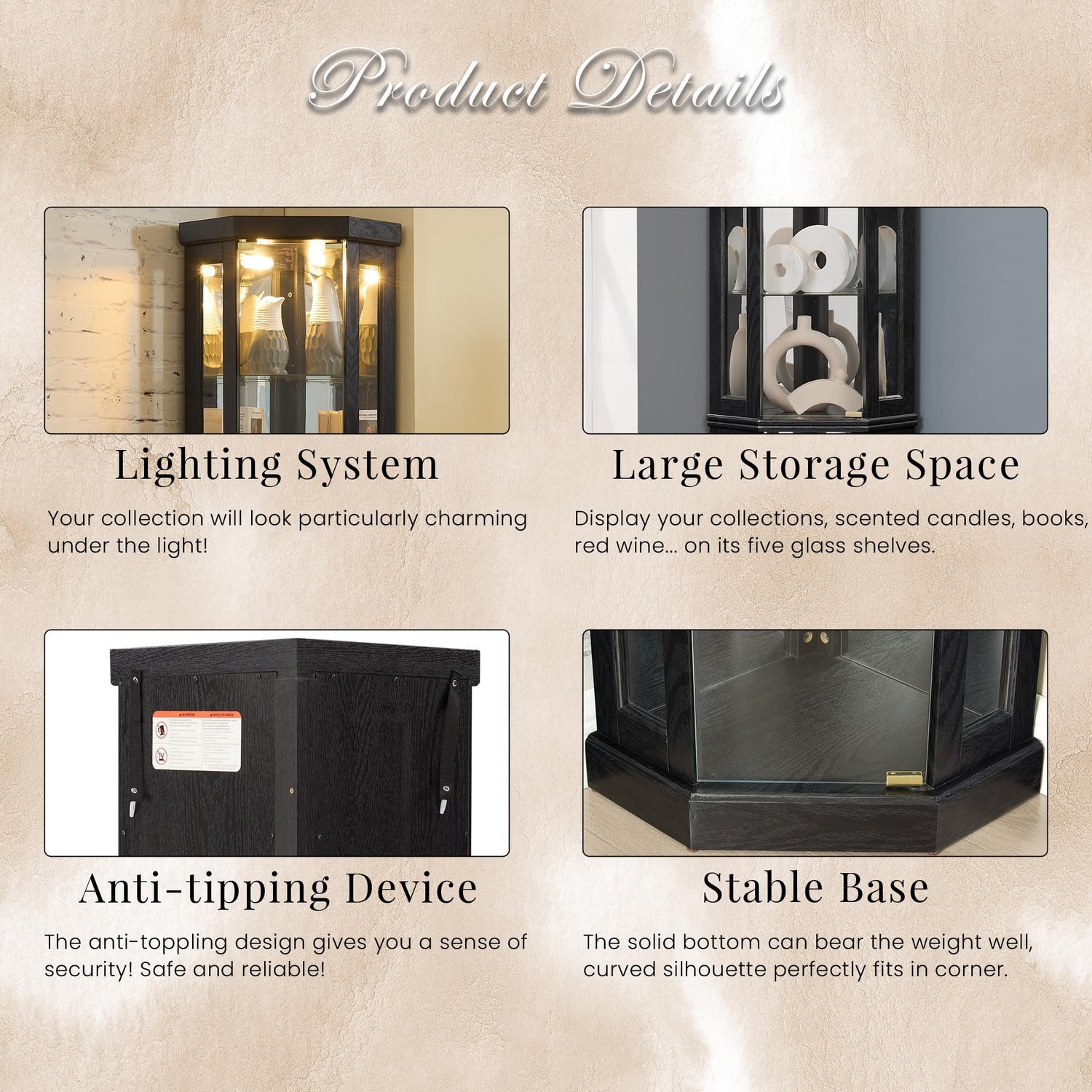 - [Quick & Effortless Assembly] - Assemble your new corner display cabinet in under 100 minutes with easy-to-follow instructions and labeled parts. Enjoy a hassle-free setup and start showcasing your favorite pieces in no time.