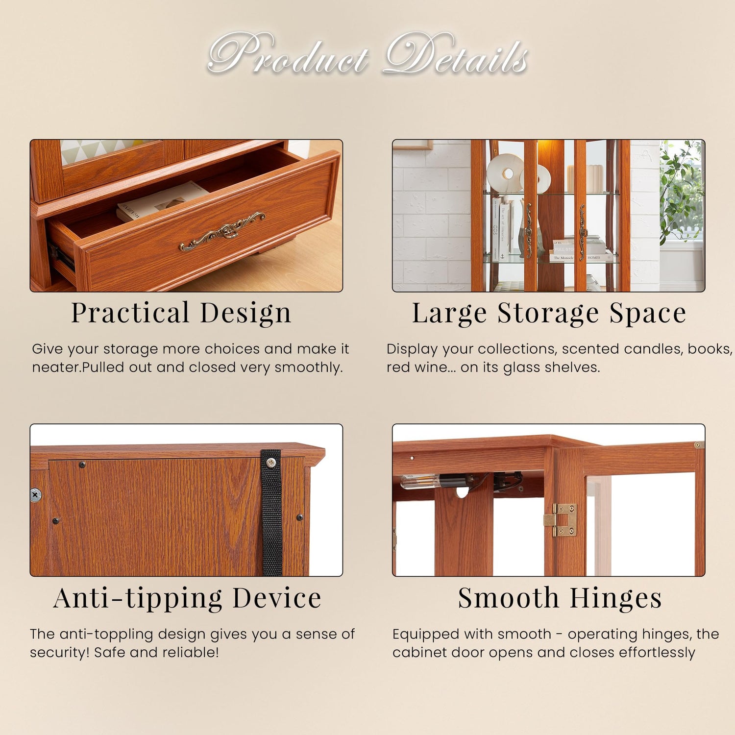 - [Exquisite Vintage Showcase Cabinet] - Crafted with solid wood curved legs, polished brass handles, and dovetail-joint drawers, this cabinet exudes authentic mid-century craftsmanship. The beveled glass panes and hand-rubbed walnut finish create a timeless heirloom-quality piece that elevates any decor.