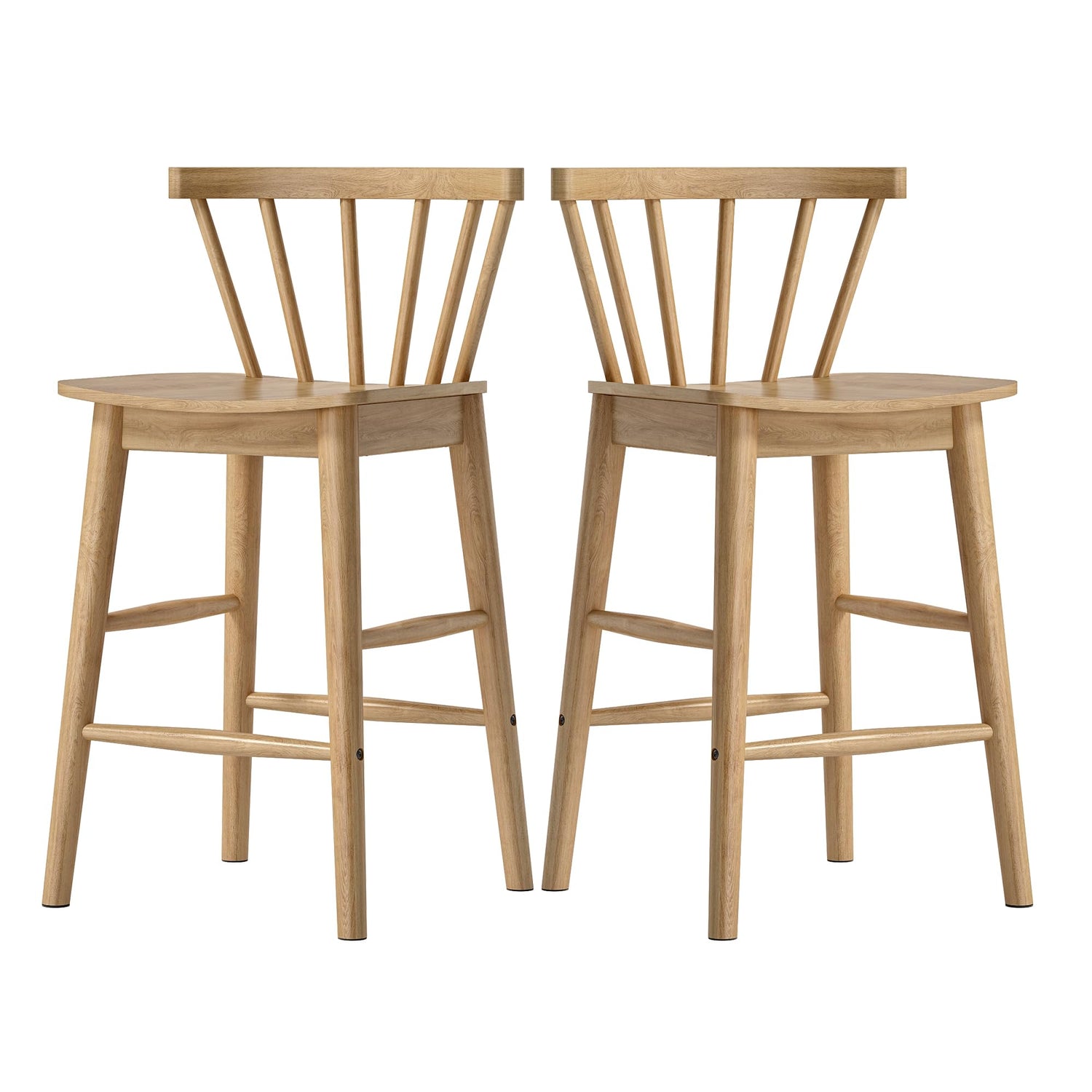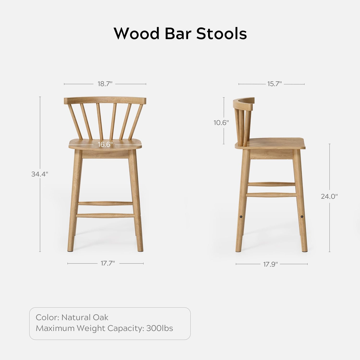 EYYTHUNG Wood Bar Stools Set of 2, 24" Barstool Farmhouse Counter Stools with Curved Back Counter Chairs for Kitchen Islands Dining Room, Natural Oak