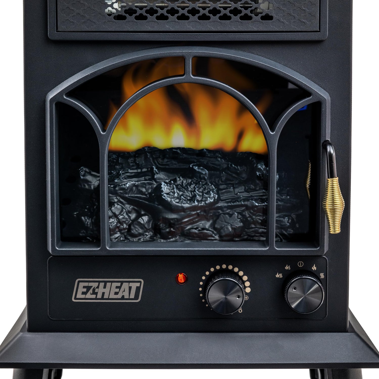 EZ-HEAT Electric Fireplace Space Heater with Flame Effect, Adjustable Thermostat, Dual Heat Settings, and Overheat Protection, MT1288