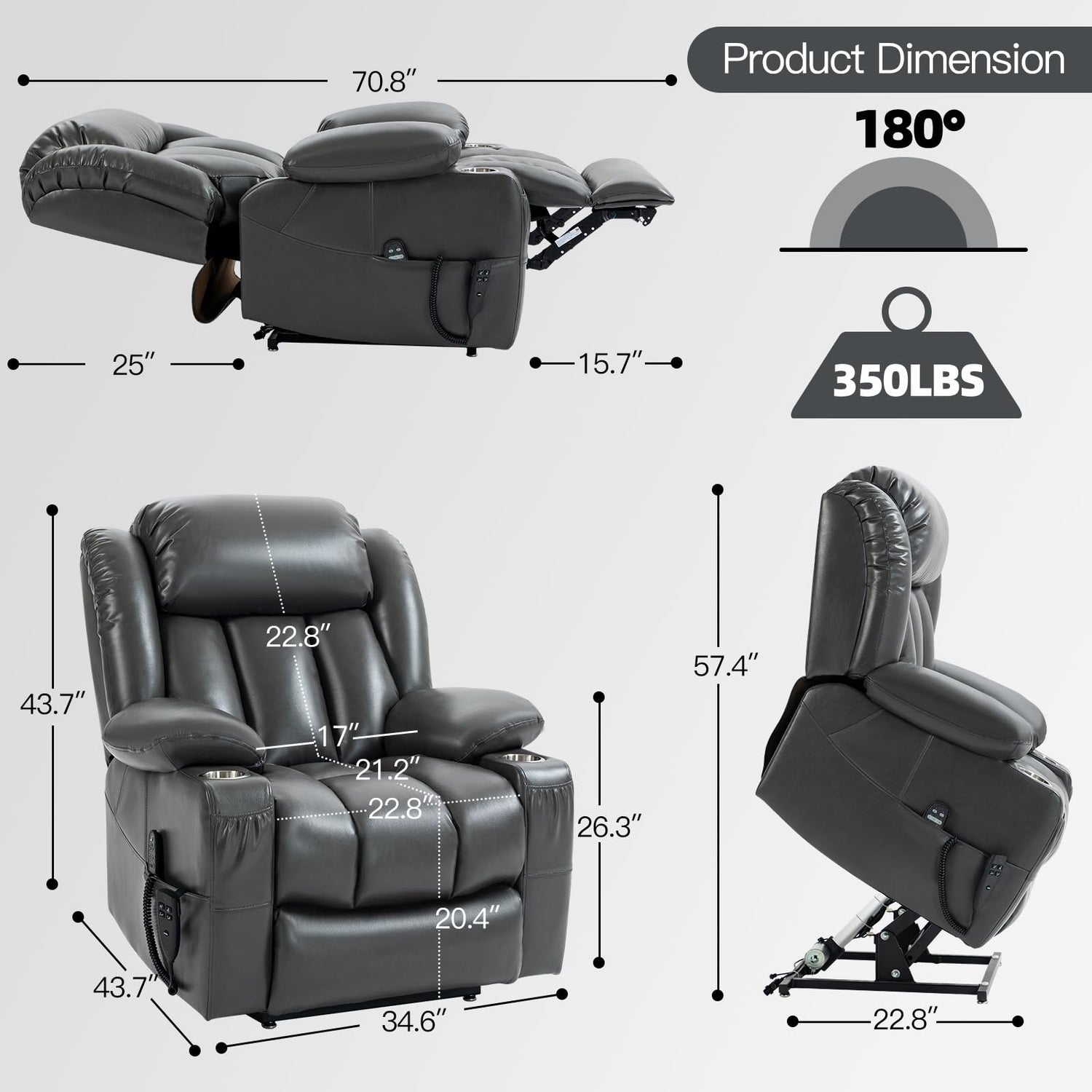 - Easy Assembly: The installation of these dual motor lift recliners are very simple without additional tools. It only takes 15 minutes for one person to complete the installation. (Weight Capacity: 350LB)