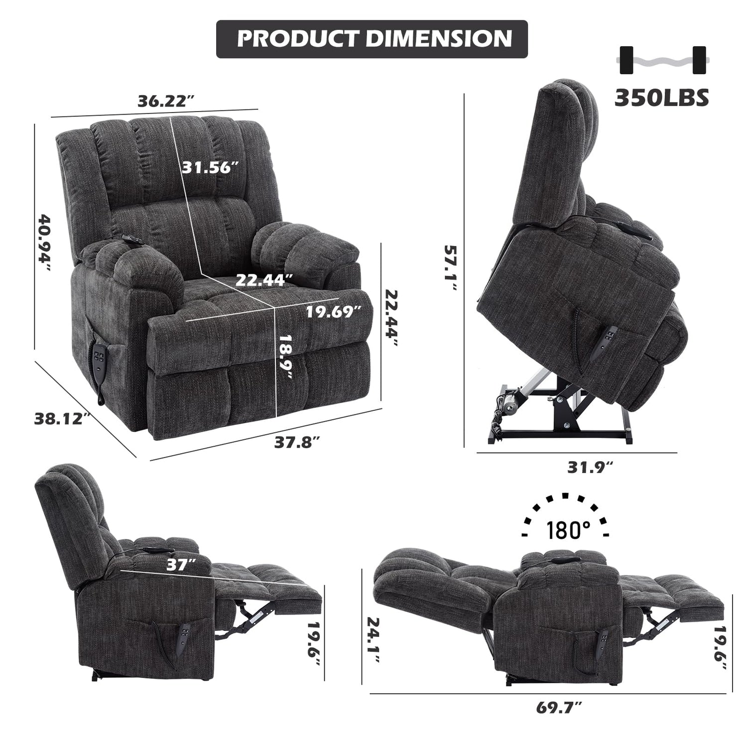 - Comfortable Upholstery: Padded high density sponge and high quality metal ensure long-term service, so that the lift chair is strong enough to withstand the weight of 350 lbs. Soft and comfy chenille cover will give you comfortable touching experience.