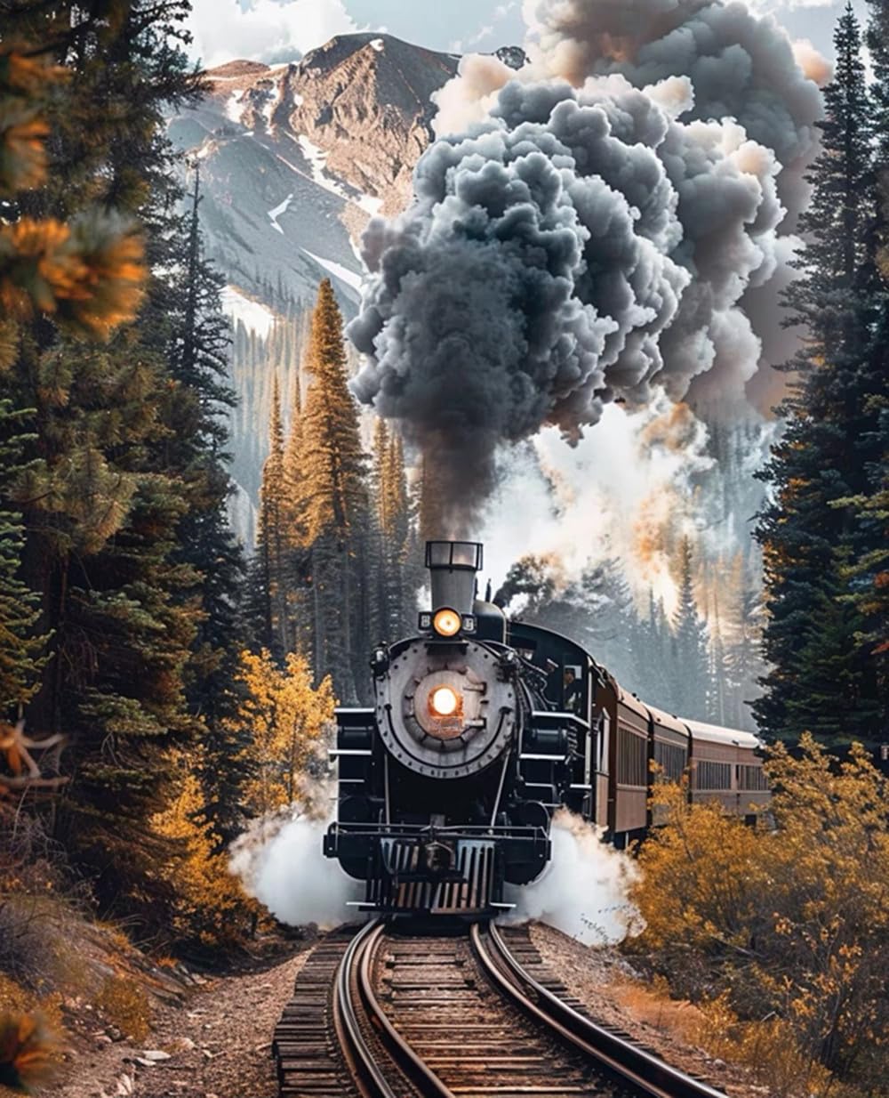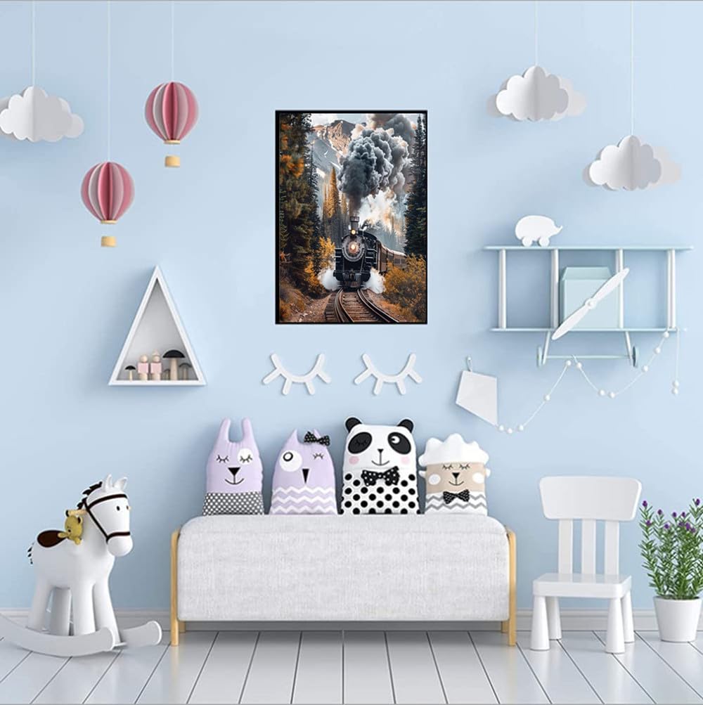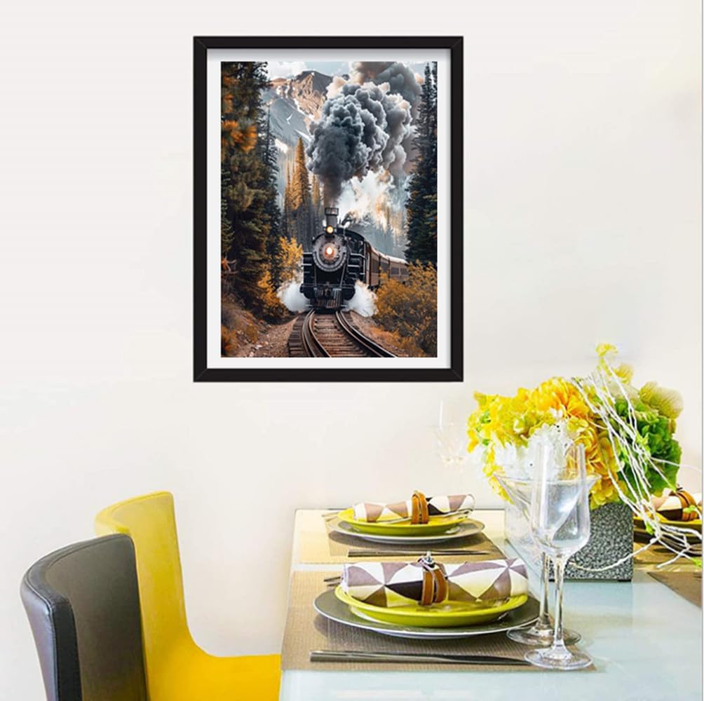 F-CANLAN Round Full Drill Diamond Painting Kit, 5D DIY Train Diamond Dots Arts Crafts Set Forest Train Crystal Crafts Dots with Diamond Adult Children Rhinestone Diamond Art Room Decor (12X16 inches)